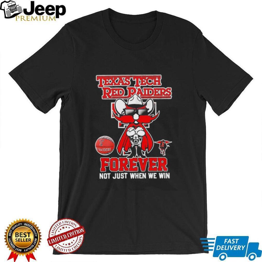 The “Texas Tech Red Raiders Forever Not Just When We Win Mascot Shirt” is a piece of apparel that boldly expresses unwavering loyalty to the Texas Tech Red Raiders, emphasizing support regardless of the team’s performance. This shirt serves as a declaration of steadfast fandom, highlighting the true meaning of supporting a team through both victories and defeats. It’s designed to resonate with passionate Texas Tech fans, alumni, and individuals who appreciate the enduring spirit of college sports fandom. The design would prominently feature the phrase “Texas Tech Red Raiders Forever Not Just When We Win,” alongside the Texas Tech mascot, often with the school’s iconic scarlet and black colors.