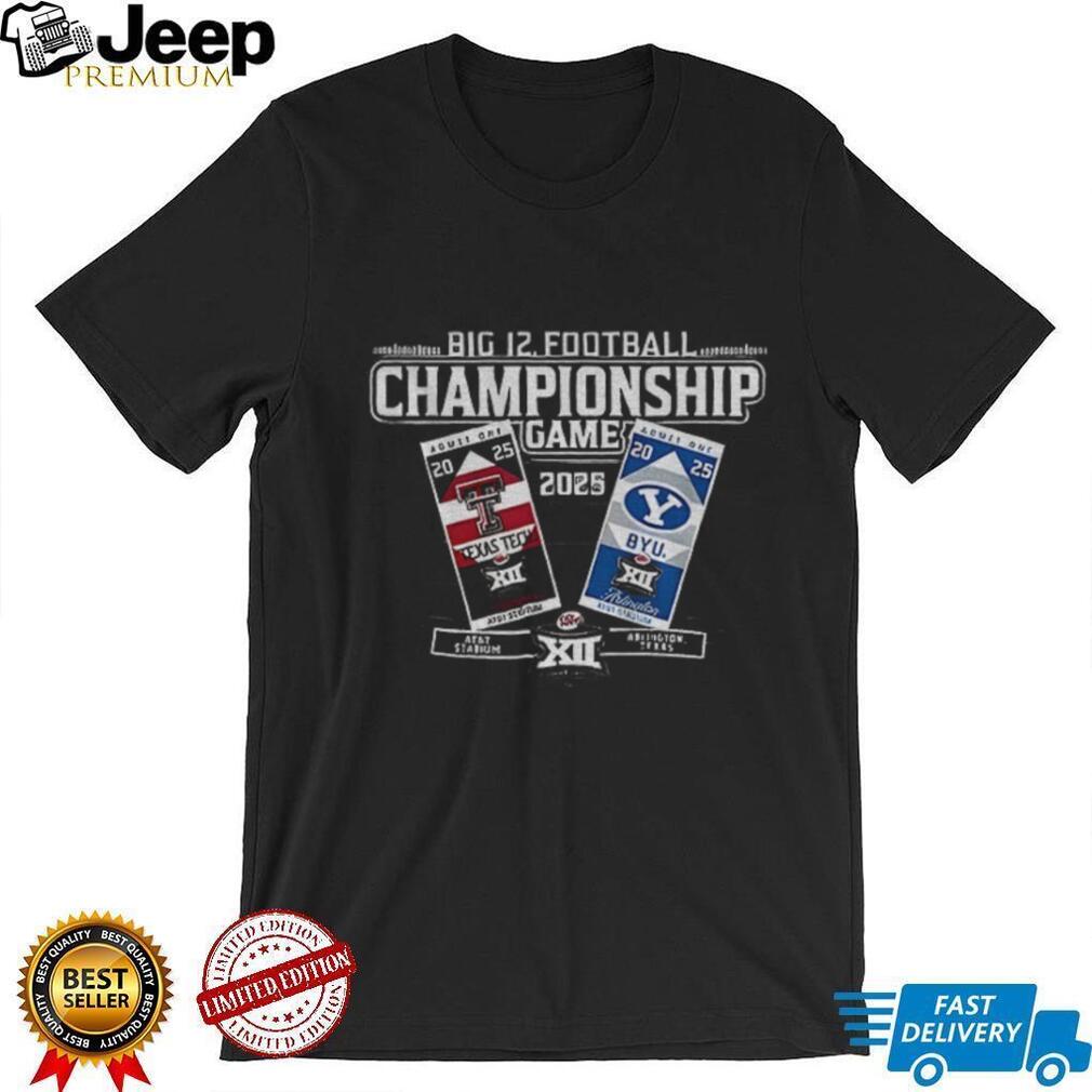 Relive the excitement of the gridiron clash with this Texas Tech Red Raiders vs BYU Cougars Big 12 Football Championship Game 2025 shirt! Whether you’re a die-hard Red Raiders fan or a Cougars fanatic, this tee lets you celebrate the thrill of college football and show your team pride in style.