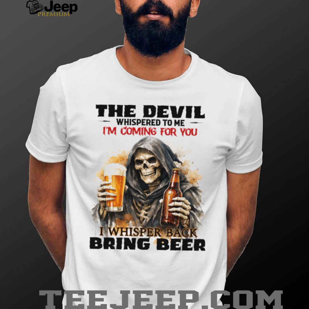 (The Devil Whispered I’m Coming For You I Whispered Bring Beer T Shirt)