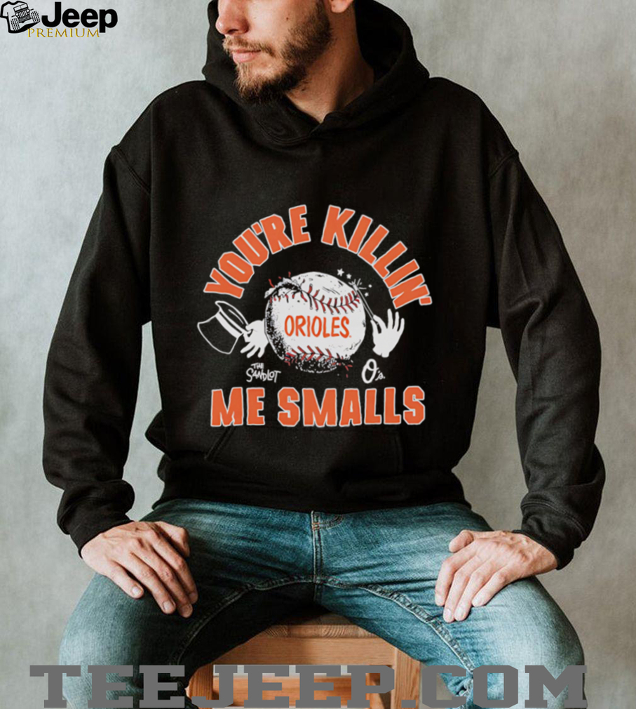 The phrase “**you’re killin’ me smalls**” is the most famous line from The Sandlot, delivered by the character Ham Porter in moments of exasperation or playful frustration with Scotty Smalls’ naiveté. This semantic keyword has transcended the film to become a widely recognized expression of affectionate annoyance or disbelief. Integrating this iconic quote with the **Baltimore Orioles** creates a unique and rare attribute for a **baseball shirt**, appealing to a dual fanbase. The **Baltimore Orioles** are a prominent entity in Major League Baseball (MLB), with a rich history that includes three World Series championships (1966, 1970, 1983) and numerous Hall of Fame players like Cal Ripken Jr. and Brooks Robinson. “O’s” fans are known for their passionate and often “long-suffering” loyalty, especially given the team’s periods of rebuilding, making the recent success of the young Orioles squad even sweeter. This particular phrase on the shirt creates an instant connection, a viral trigger, for those who appreciate both the film’s humor and the enduring spirit of Orioles baseball. It’s a personal commentary, showcasing a wearer’s witty appreciation for both pop culture and their team, especially when facing those nail-biting, “killing me” moments in a tight game.