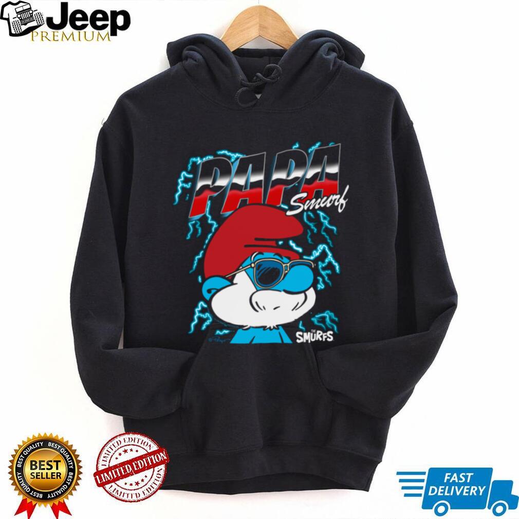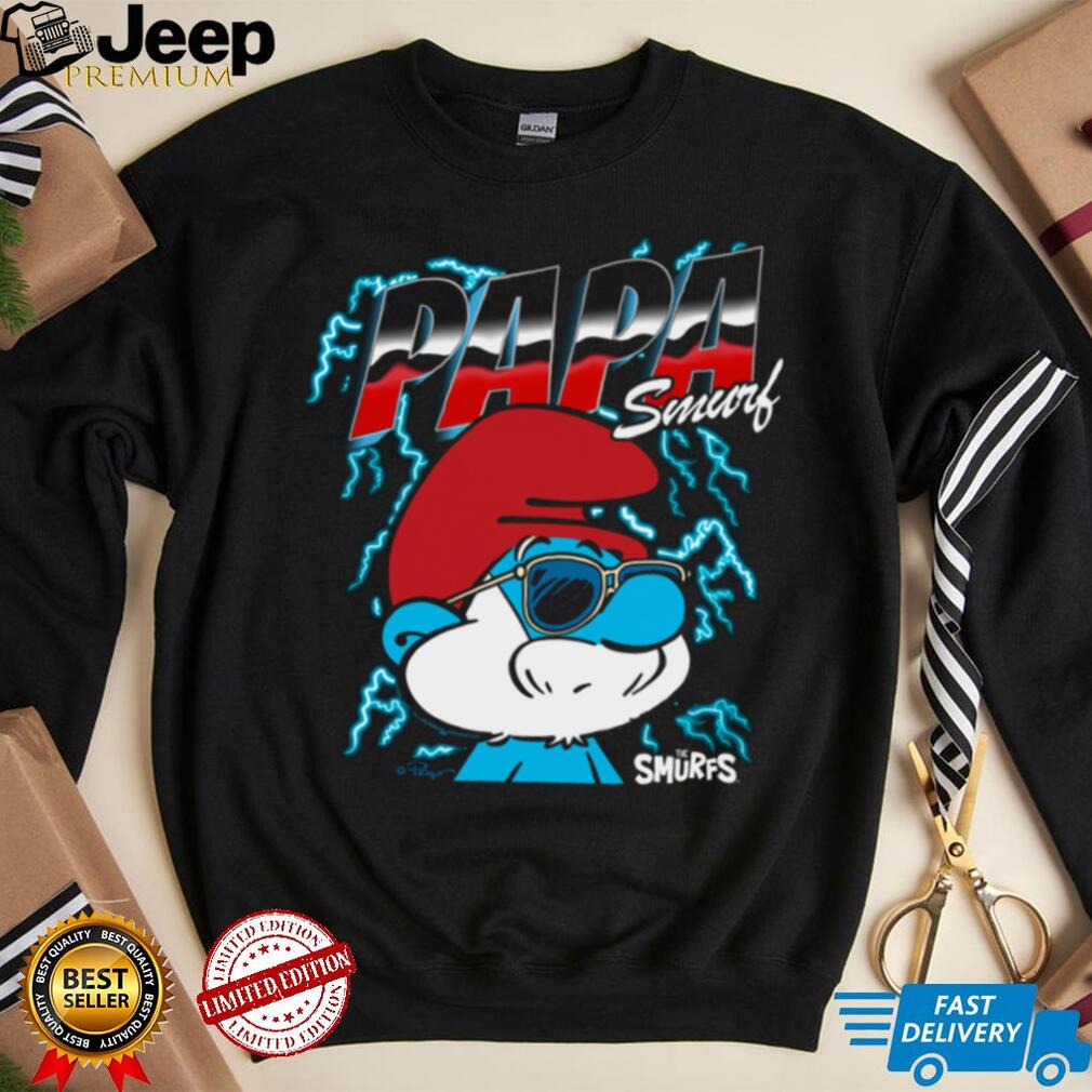 The design elements of “chrome and lightning” are not merely decorative; they carry significant symbolic weight. “Chrome” often signifies sleekness, modernity, strength, and a polished, reflective quality. Think of classic cars or futuristic machinery – chrome suggests resilience and advanced design. “Lightning,” on the other hand, is a primal symbol of raw power, speed, energy, and sudden impact. When combined, as on this shirt, “chrome and lightning” create an aura of formidable presence and high-octane energy. This fusion visually transforms Papa Smurf from a gentle patriarch into a formidable, almost superheroic figure capable of commanding powerful forces. It’s a viral trigger, as this unexpected visual twist on a familiar character immediately sparks interest and admiration, inviting viewers to reconsider Papa Smurf’s iconic status.