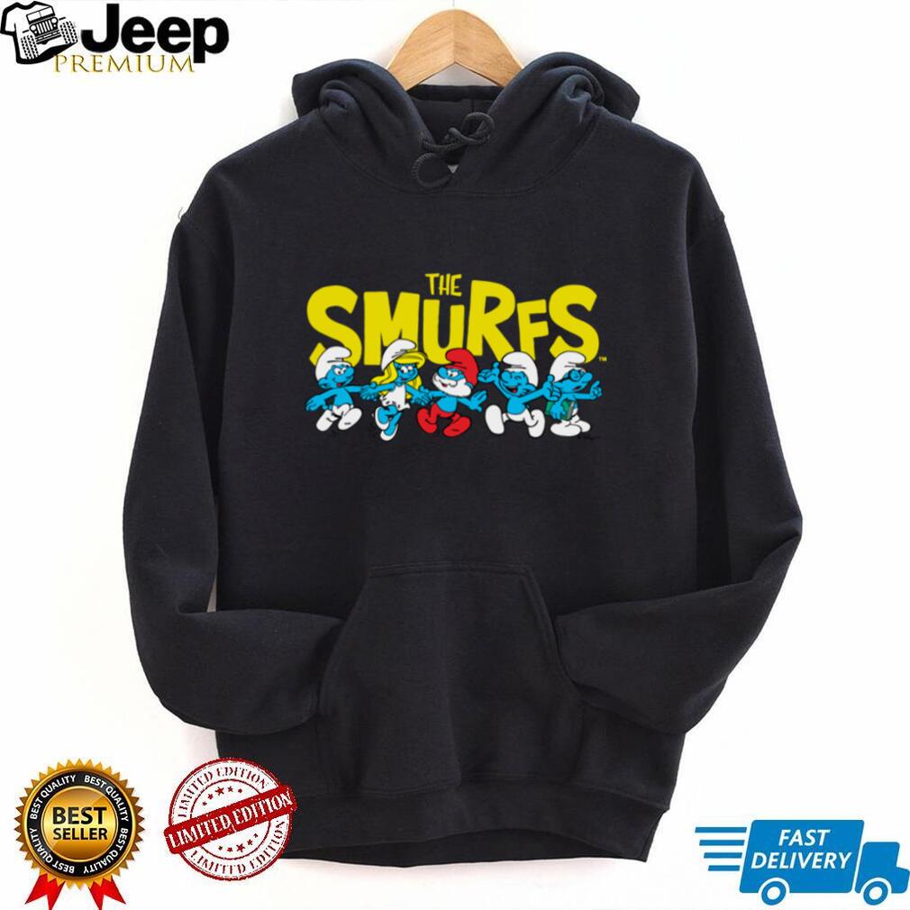 Step into Smurf Village: Embrace the Charm of The Smurfs Logo with Smurfs Cast Retro Cartoon Shirt!