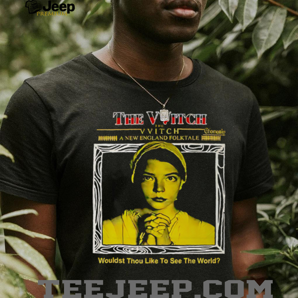 The “The Witch wouldst thou like to see the world shirt” is a captivating piece of merchandise that delves deep into the unsettling and thought-provoking world of Robert Eggers’ critically acclaimed 2015 horror film, The Witch. This shirt immediately connects with fans of atmospheric, folk horror and those who appreciate the film’s nuanced exploration of faith, fear, and temptation. It’s more than just a piece of apparel; it’s a statement that signals an appreciation for cinematic artistry and the darker corners of human nature and folklore.