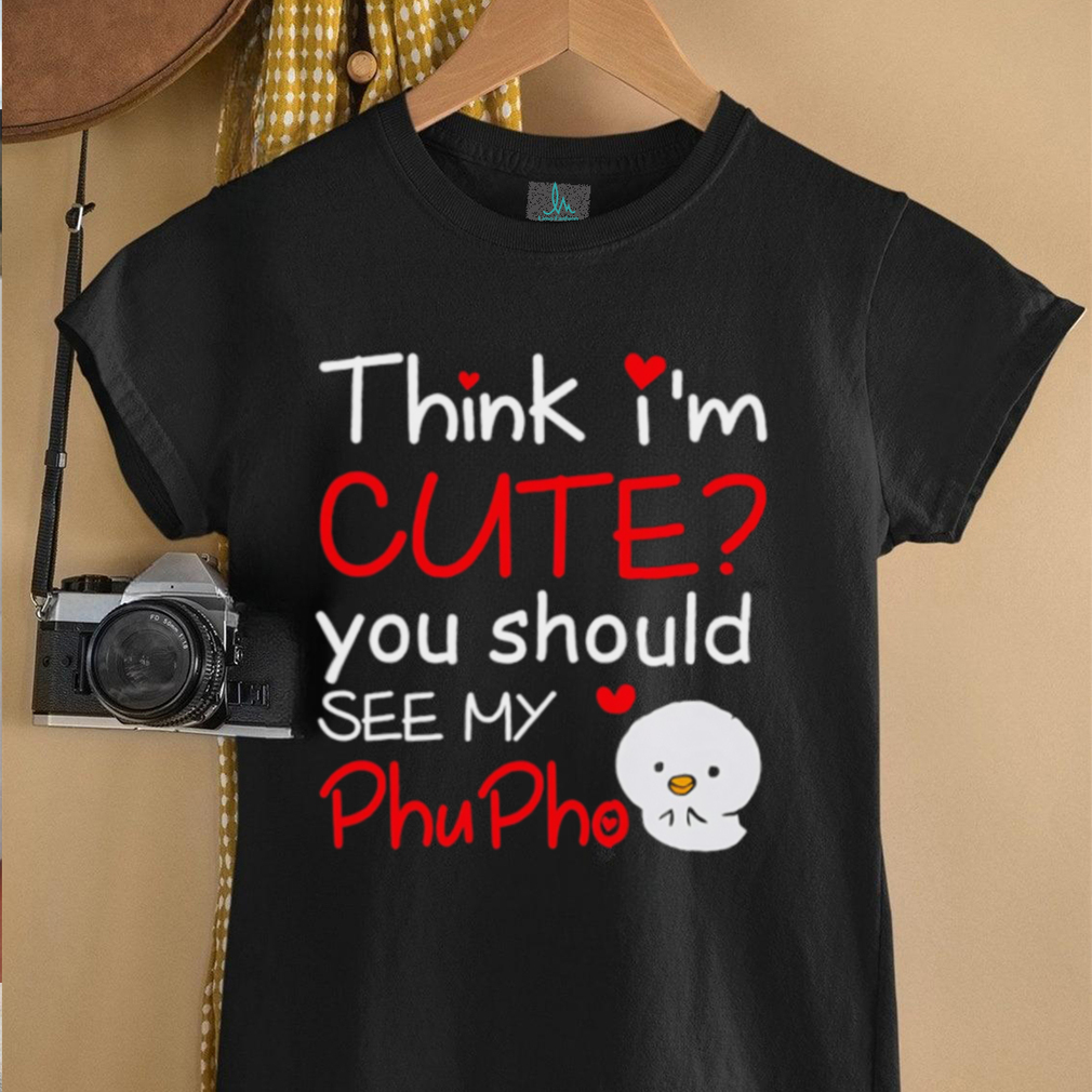 A “Think I’m Cute You Should See My Phu Pho shirt” uses a humorous and endearing approach to express pride in one’s Phu Pho. The phrase “Think I’m Cute” serves as a lighthearted opening, drawing attention to the wearer. The follow-up, “You Should See My Phu Pho,” then playfully suggests that while the wearer might be considered cute, their Phu Pho is even more so. This implies a deep affection and admiration for their Phu Pho, using a bit of self-deprecation for comedic effect and to build anticipation for the person being referenced.