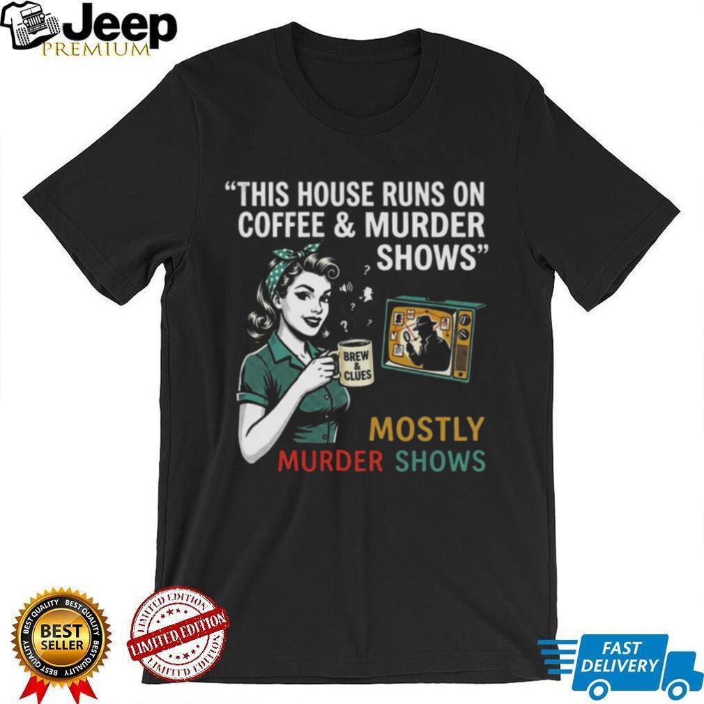 ()This House Runs On Coffee and Murder Shows Retro Housewife Tee, Treat yourself or make a great gift for your loved ones
