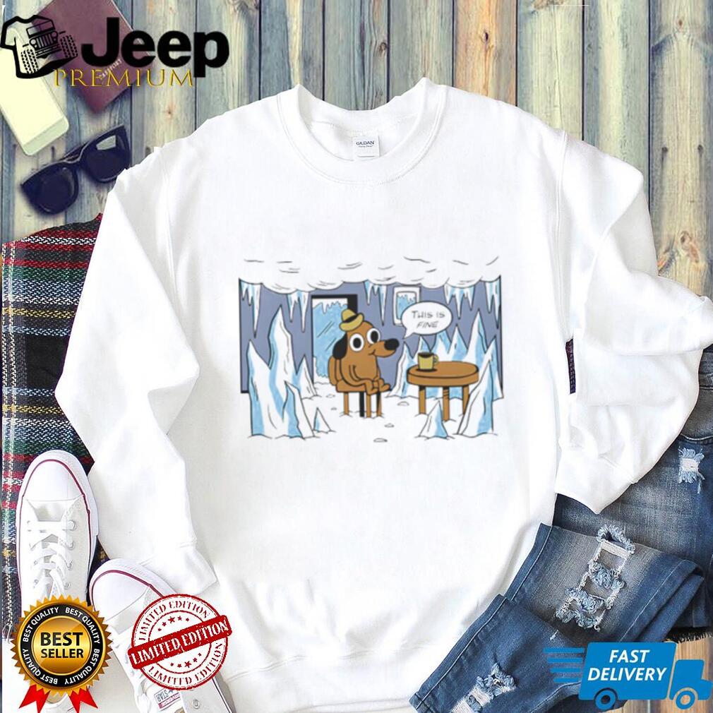 (“This is Fine” Dog Meme Winter Ice Cave Version White T Shirt)“This is Fine” Dog Meme Winter Ice Cave Version White T Shirt, Treat yourself or make a great gift for your loved ones