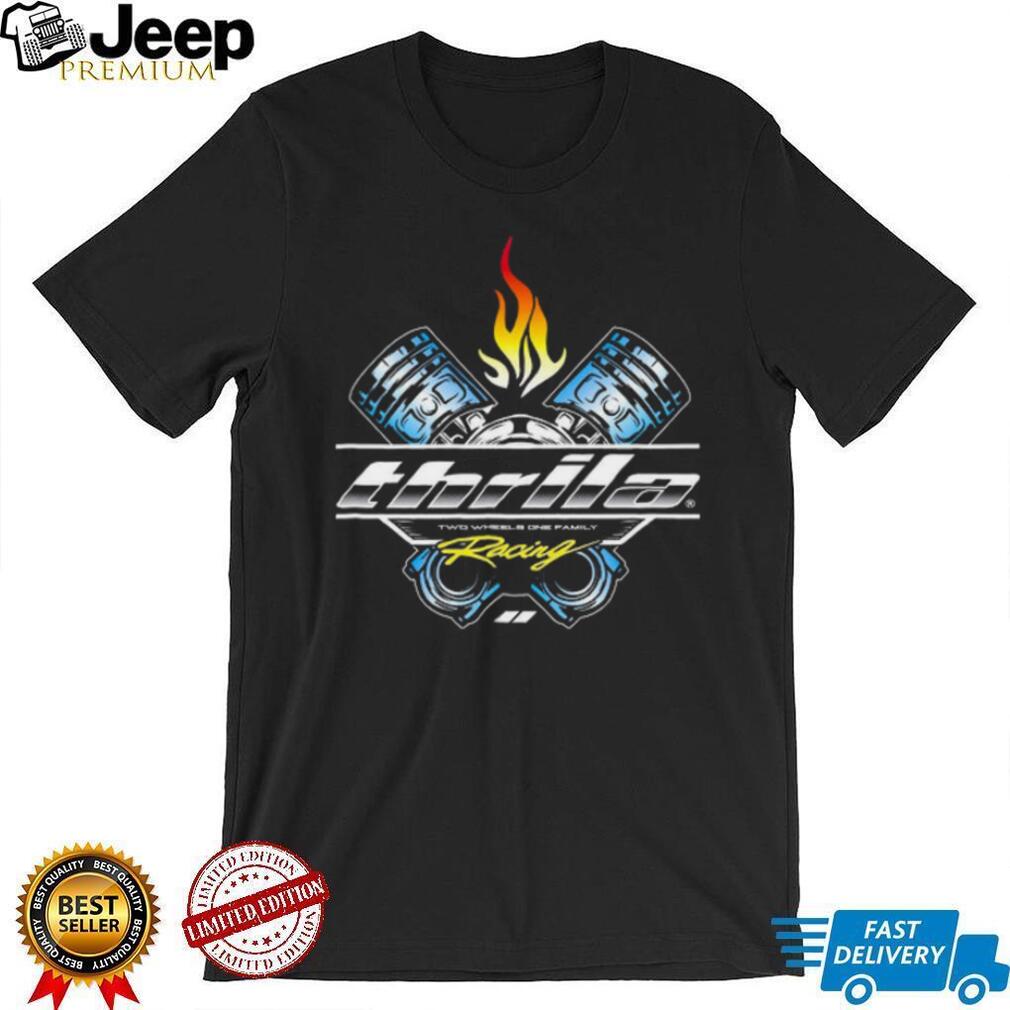 ()Thrila Racing Two Wheels One Family Piston Flame Graphic T Shirt, Treat yourself or make a great gift for your loved ones