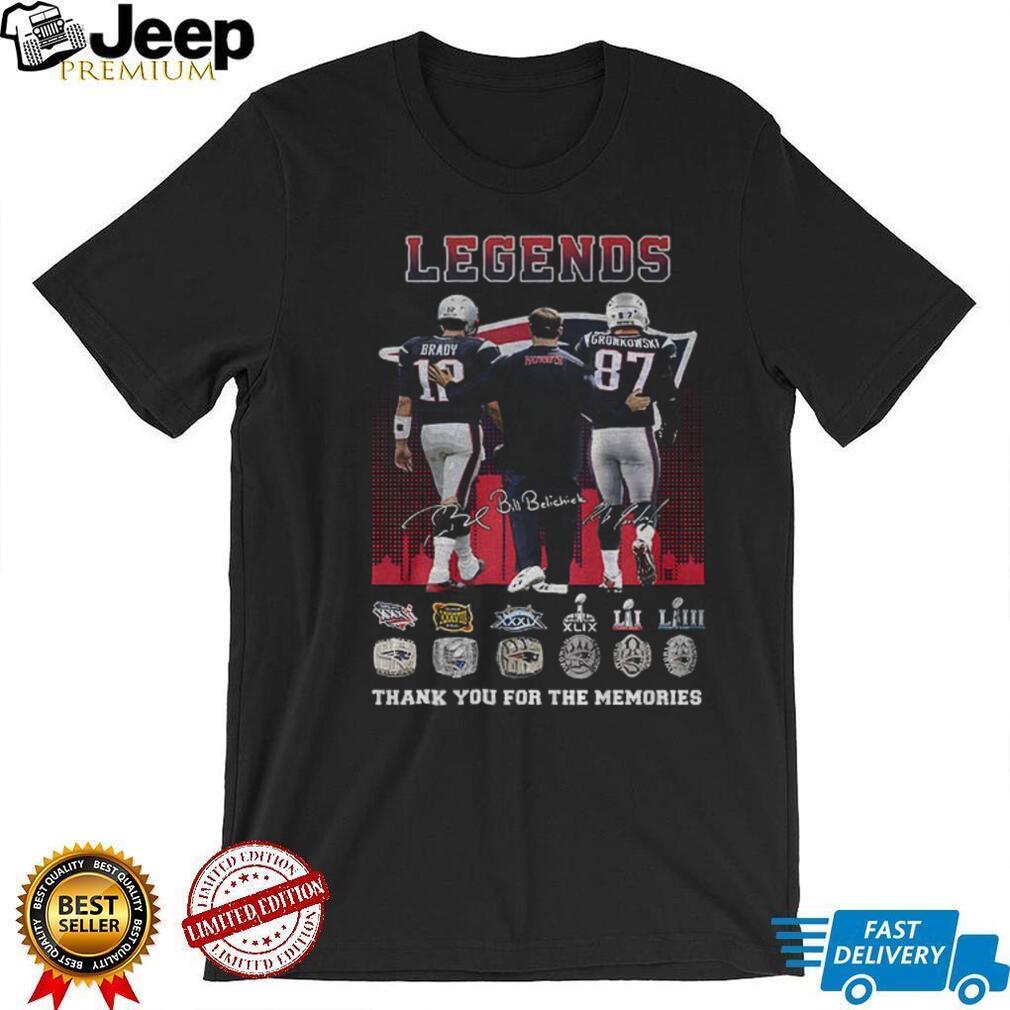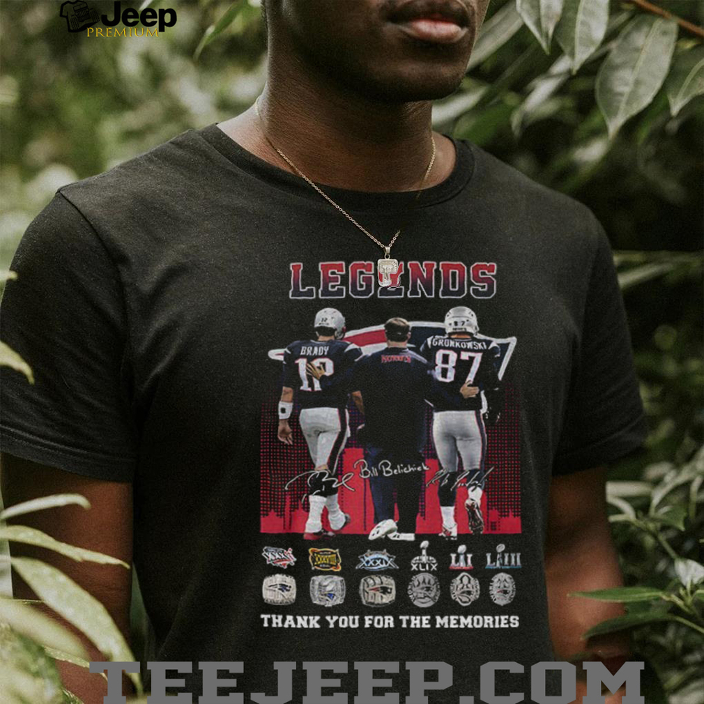 Celebrate the golden era of New England Patriots football with this legendary signatures shirt! Featuring Tom Brady, Rob Gronkowski, and Bill Belichick, this tee honors the iconic trio that dominated the NFL for two decades. A must-have for any die-hard Patriots fan looking to relive the glory days and show their appreciation for these football legends.