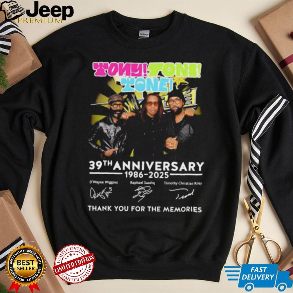 The “Tony Toni Tone 39th anniversary 1986 2025 thank you for the memories shirt” is a piece of apparel that commemorates the 39th anniversary of the R&B group Tony Toni Tone. This shirt serves as a tribute to their enduring musical legacy and a thank you to their fans for their continued support. It celebrates the group’s journey from their formation in 1986 to the hypothetical celebration in 2025. The design prominently features the group’s name, the anniversary years, and a message of gratitude.