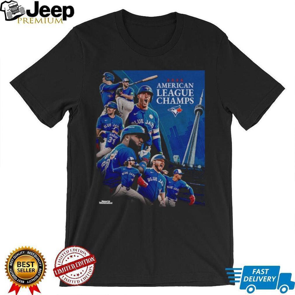 Own a piece of Blue Jays history with this Toronto Blue Jays American League Champs Sports Illustrated poster shirt! This unique tee commemorates the Blue Jays’ championship season with a classic Sports Illustrated cover design. A must-have for any die-hard Jays fan or collector of baseball memorabilia.