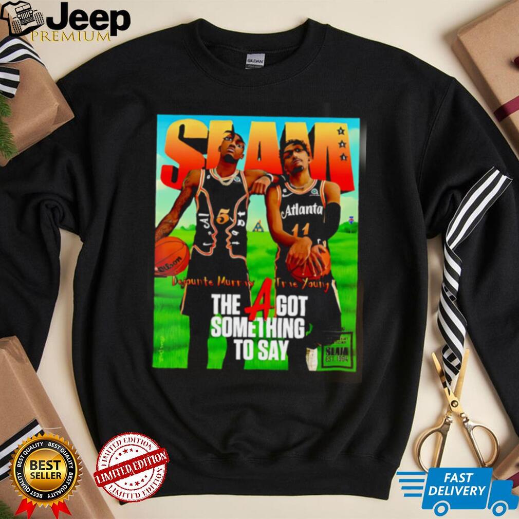 Imagine wearing this shirt at an Atlanta Hawks game in State Farm Arena, a basketball viewing party, or a casual gathering with fellow NBA fans, surrounded by individuals who share the same excitement for Young and Murray’s dynamic play. Now, picture that same person wearing the shirt during everyday activities, using it as a subtle expression of their Hawks devotion and a reminder of the electrifying moments created by their star backcourt. This “Trae Young and Dejounte Murray Atlanta Hawks NBA Slam Shirt” allows wearers to showcase their dedication to the Atlanta Hawks and their connection to the team’s exciting play in a recognizable and meaningful way. It’s a statement that blends basketball fandom with a sense of star-powered excitement, allowing for a unique form of self-expression and promoting a shared appreciation for dynamic guard play.