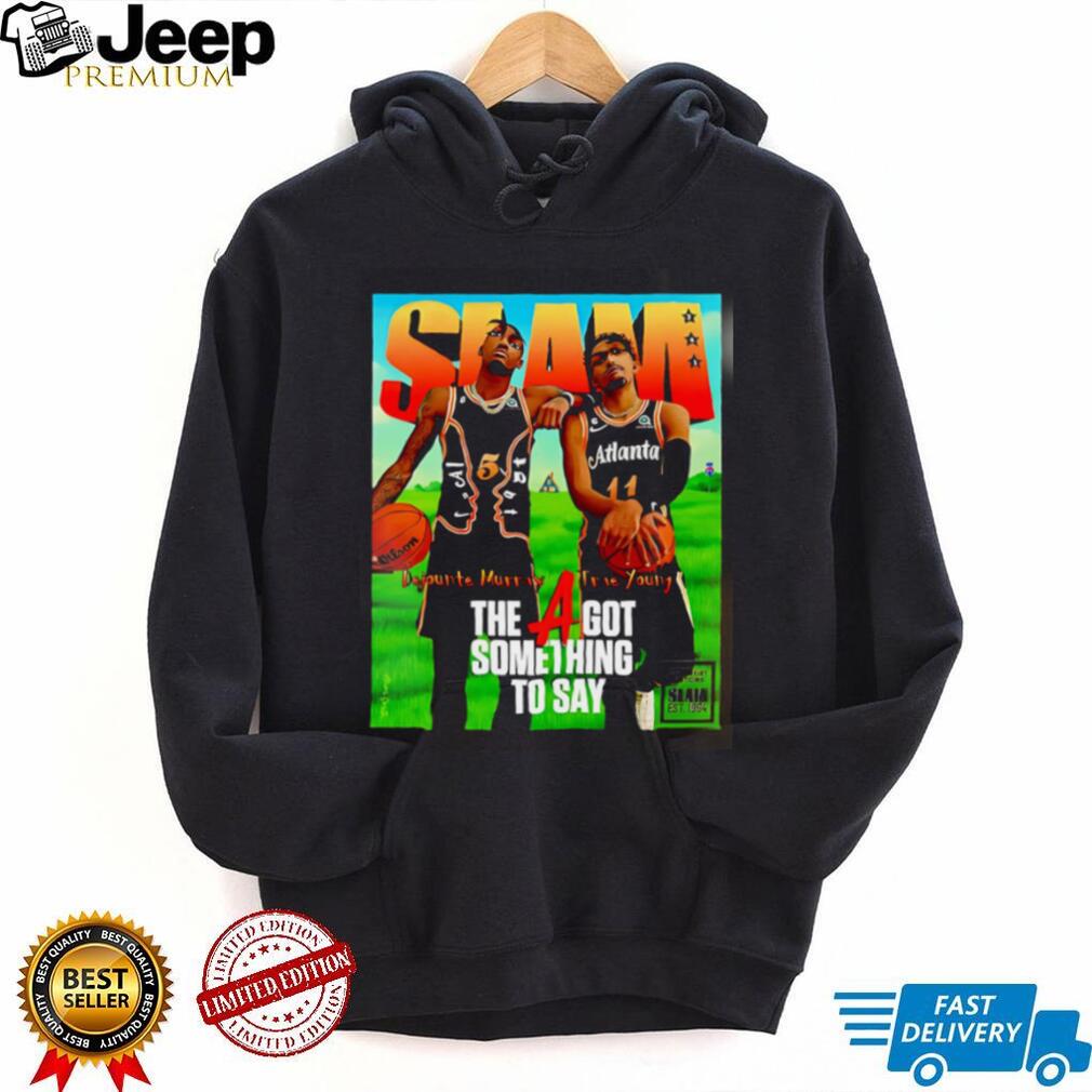 The “Trae Young and Dejounte Murray Atlanta Hawks NBA Slam Shirt” is a piece of apparel that celebrates the dynamic backcourt duo of Trae Young and Dejounte Murray on the Atlanta Hawks. This shirt serves as a tribute to their combined talent, their exciting plays, and their impact on the Hawks’ performance. It’s designed to resonate with Atlanta Hawks fans, basketball enthusiasts who appreciate dynamic guard play, and individuals who enjoy showcasing their support for star players. The design would prominently feature Trae Young and Dejounte Murray, the Atlanta Hawks logo, and imagery related to their highlight slam dunks or their combined on-court presence.
