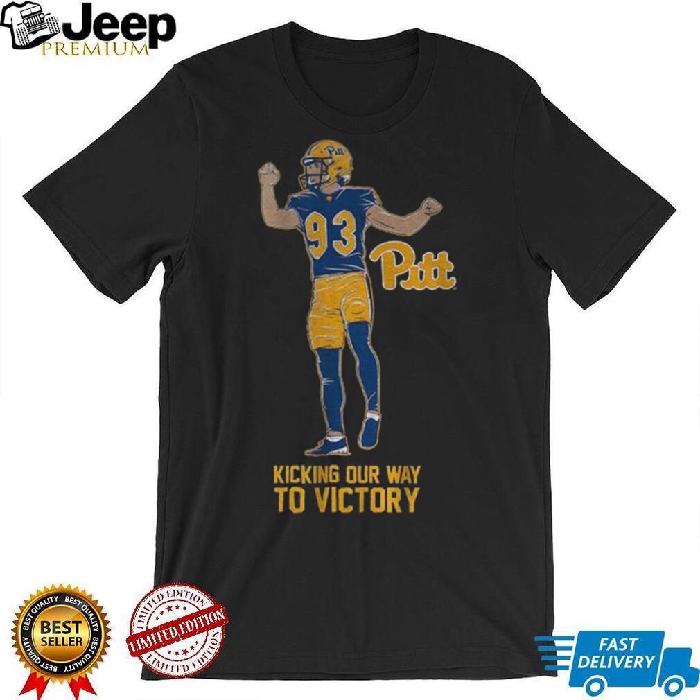 Cheer on Trey Butkowski and the Pittsburgh Panthers with this “Kicking Our Way to Victory” football shirt! It’s the perfect way to show your support for the Panthers’ kicking game and celebrate the team’s drive for success. Whether you’re at Heinz Field or watching from home, let everyone know you’re a proud Panthers fan with this unique tee.