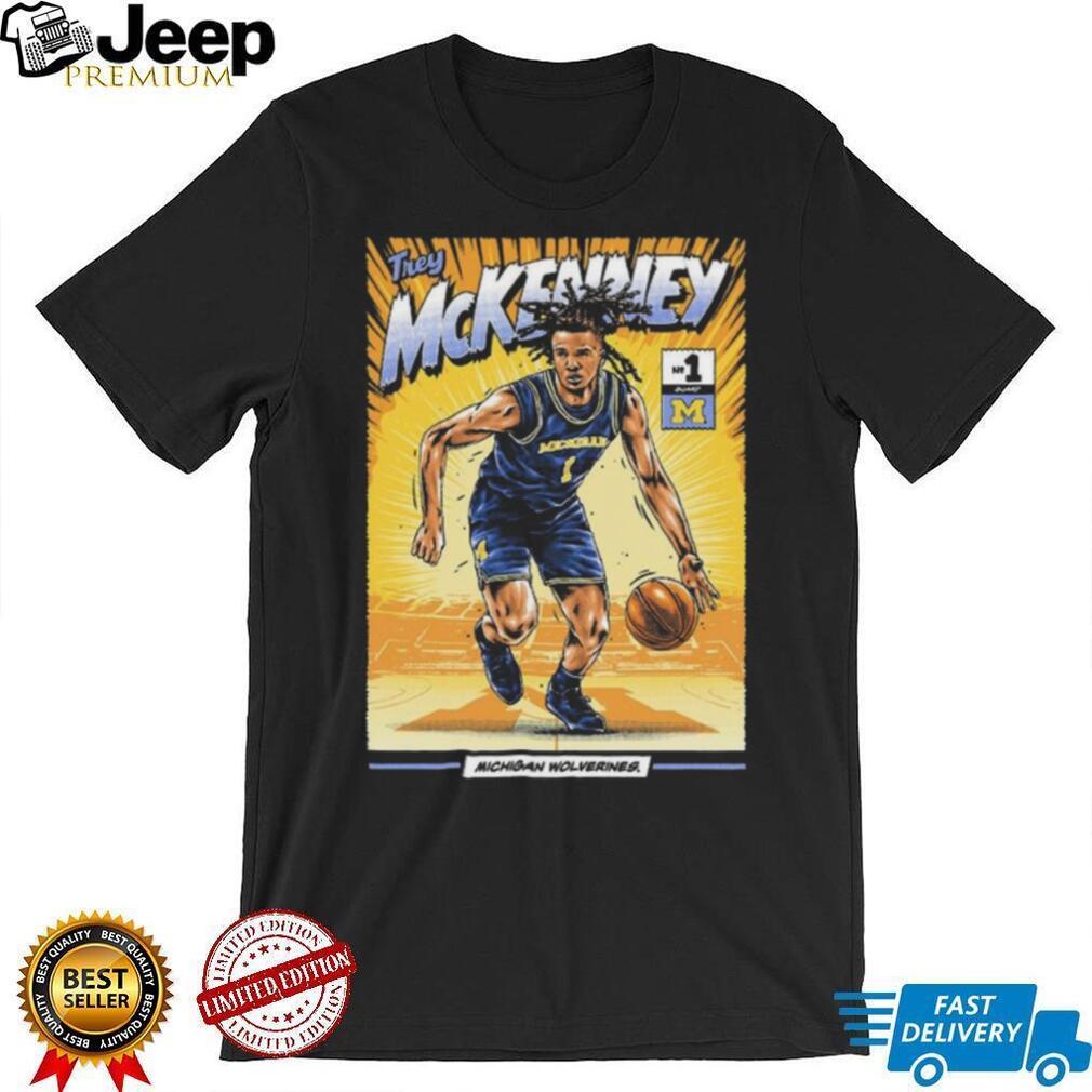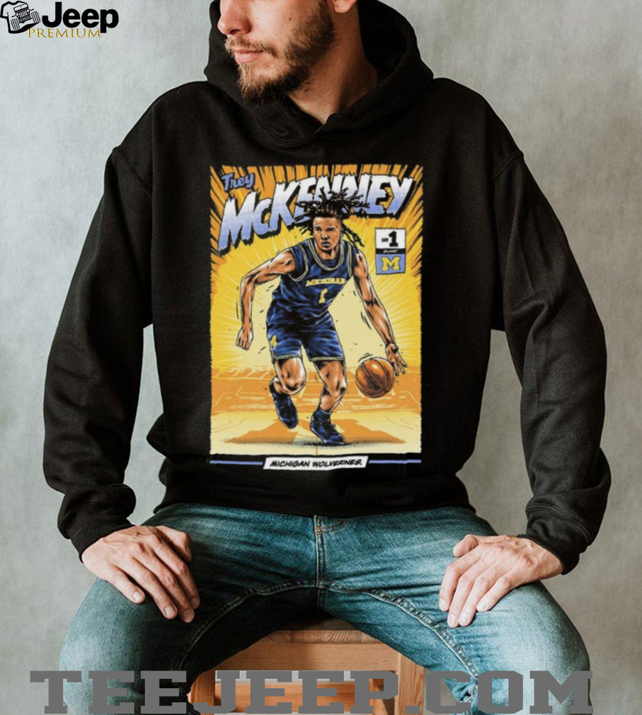 (Trey McKenney Michigan Wolverines Comic Style Basketball Graphic T Shirt)