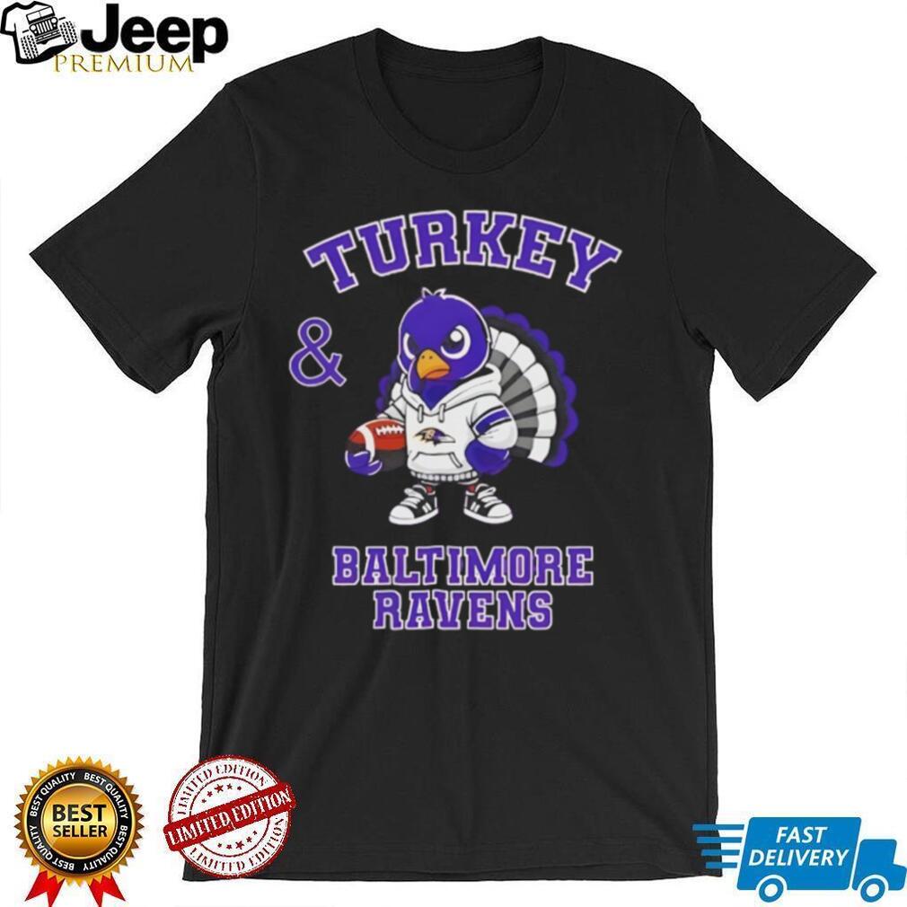 This Turkey and Baltimore Ravens Football NFL Happy Thanksgiving shirt brings together the best of both worlds: Thanksgiving and NFL football. Crafted from a soft, comfortable cotton blend, this shirt is perfect for enjoying holiday feasts and cheering on the Ravens. Its festive design with a turkey and Ravens imagery makes it a unique addition to any fan’s wardrobe, offering a relaxed fit for all-day comfort.