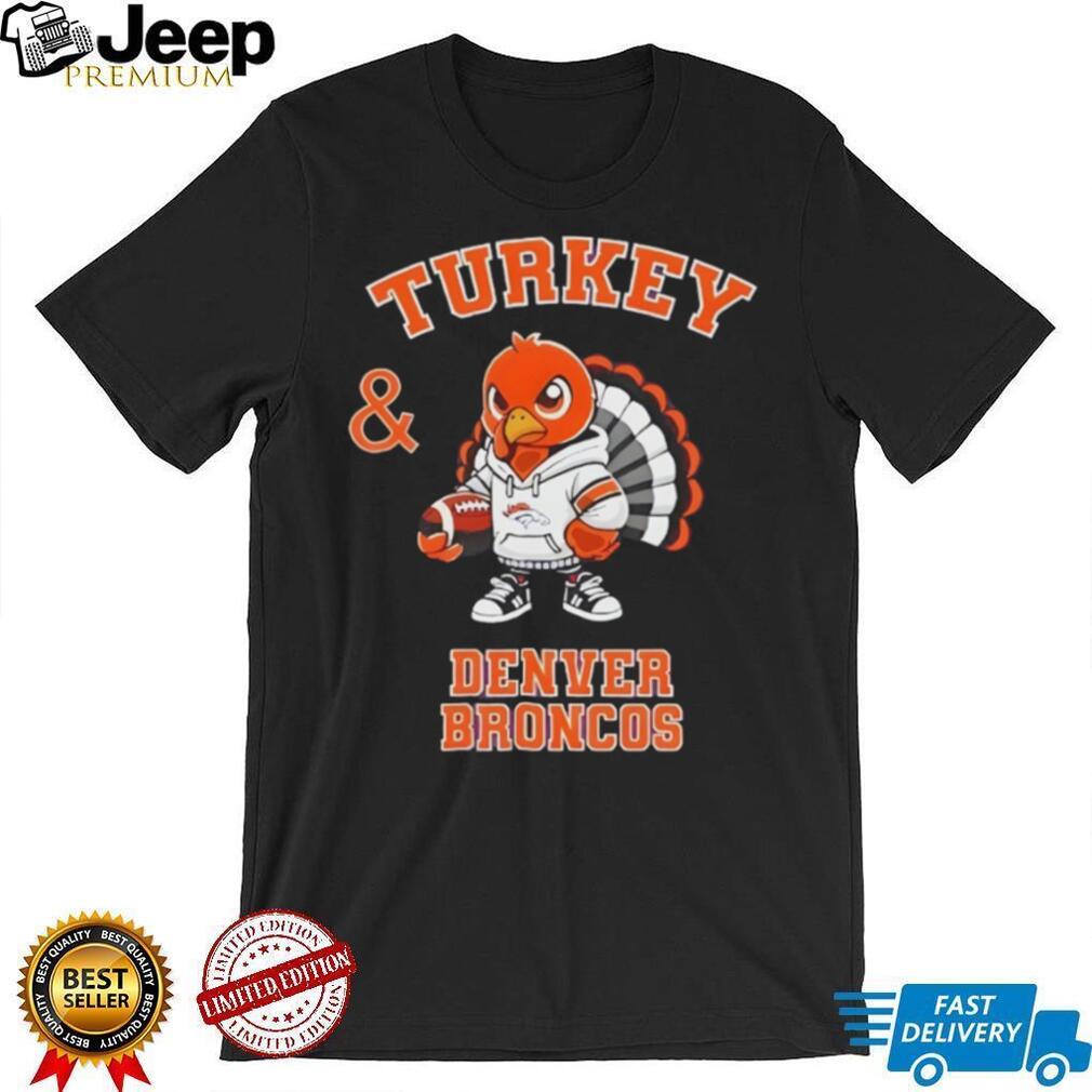 This Turkey and Denver Broncos Football NFL Happy Thanksgiving shirt combines the joy of Thanksgiving with unwavering team spirit. Crafted from a soft, comfortable cotton blend, it’s ideal for festive holiday gatherings and cheering on the Denver Broncos. The design features a playful turkey alongside Broncos imagery, making it a unique and comfortable way to celebrate both the holiday and your favorite NFL team.