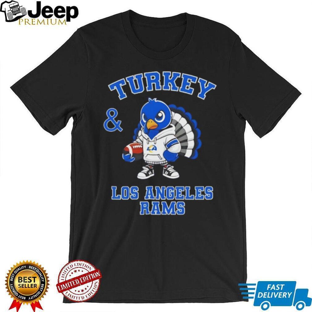 This Turkey and Los Angeles Rams Football NFL Happy Thanksgiving shirt is for the devoted Rams fan, the football enthusiast, and anyone who loves to celebrate Thanksgiving with a bit of team flair. It’s perfect for family dinners, watching the big game with friends, or enjoying a festive parade. This makes a thoughtful and spirited gift for any Los Angeles Rams supporter looking to combine their passions during the holiday season.