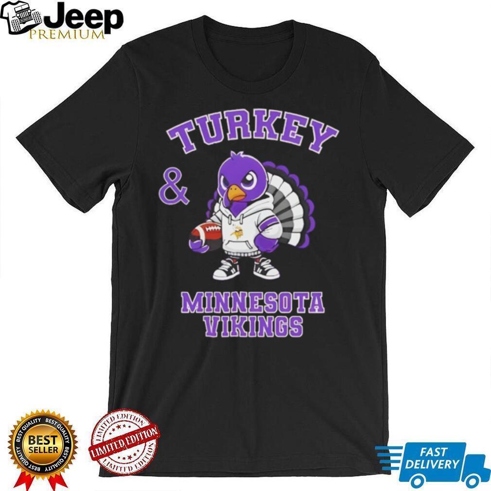 This Turkey and Minnesota Vikings Football NFL Happy Thanksgiving shirt combines the joy of Thanksgiving with unwavering team spirit. Made from a soft, comfortable cotton blend, it’s ideal for festive holiday gatherings and cheering on the Minnesota Vikings. The design features a festive turkey alongside Vikings imagery, making it a unique and comfortable way to celebrate both the holiday and your favorite NFL team.