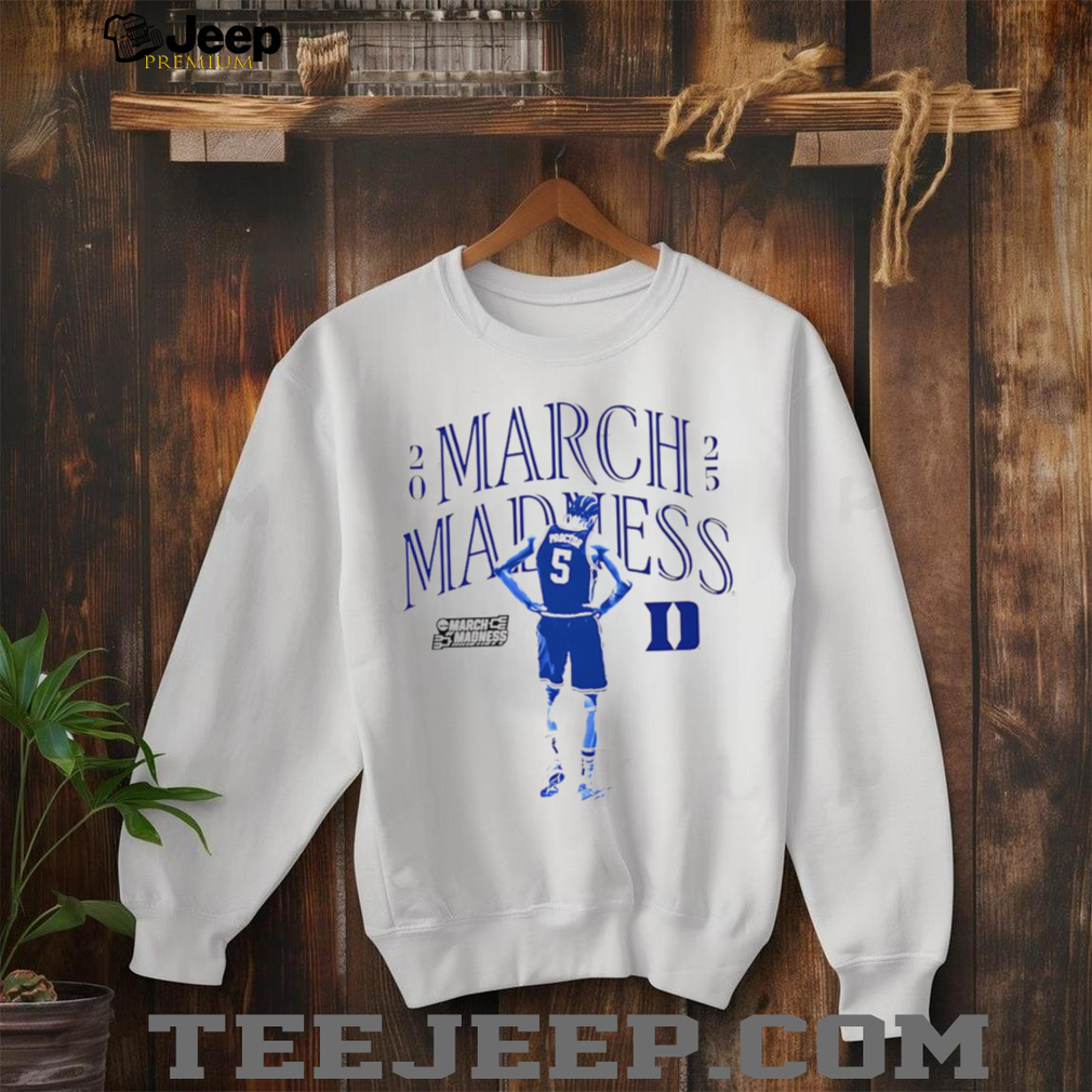 The “Tyrese Proctor Duke Blue Devils 2025 March Madness Shirt” is a piece of apparel that celebrates the basketball player Tyrese Proctor and his contributions to the Duke Blue Devils men’s basketball team during their hypothetical 2025 March Madness tournament run. This shirt serves as a tribute to Proctor’s performance, highlighting his individual impact within the team’s tournament journey. It’s designed to resonate with Duke fans who admire Proctor’s talent and dedication, particularly during the excitement of March Madness. The design would prominently feature Tyrese Proctor’s name, along with Duke Blue Devils branding, and March Madness 2025 details.