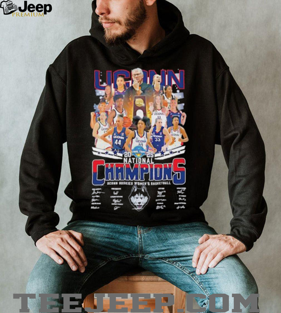 This “UConn Huskies Women’s Basketball Team 2025 National Champions Signature shirt” will undoubtedly become a prized 기념품 for UConn women’s basketball enthusiasts. It captures a historic moment in the program’s storied history and combines it with the personal слава of the team members who achieved it. For dedicated fans who followed the Huskies throughout their championship-winning season, this signed shirt serves as a tangible reminder of the excitement, the hard-fought games, and the ultimate triumph of 2025. It’s a lasting tribute to the team’s legacy and a cherished item to commemorate their national championship victory for years to come, especially after their decisive win in the championship game on April 6th, 2025.