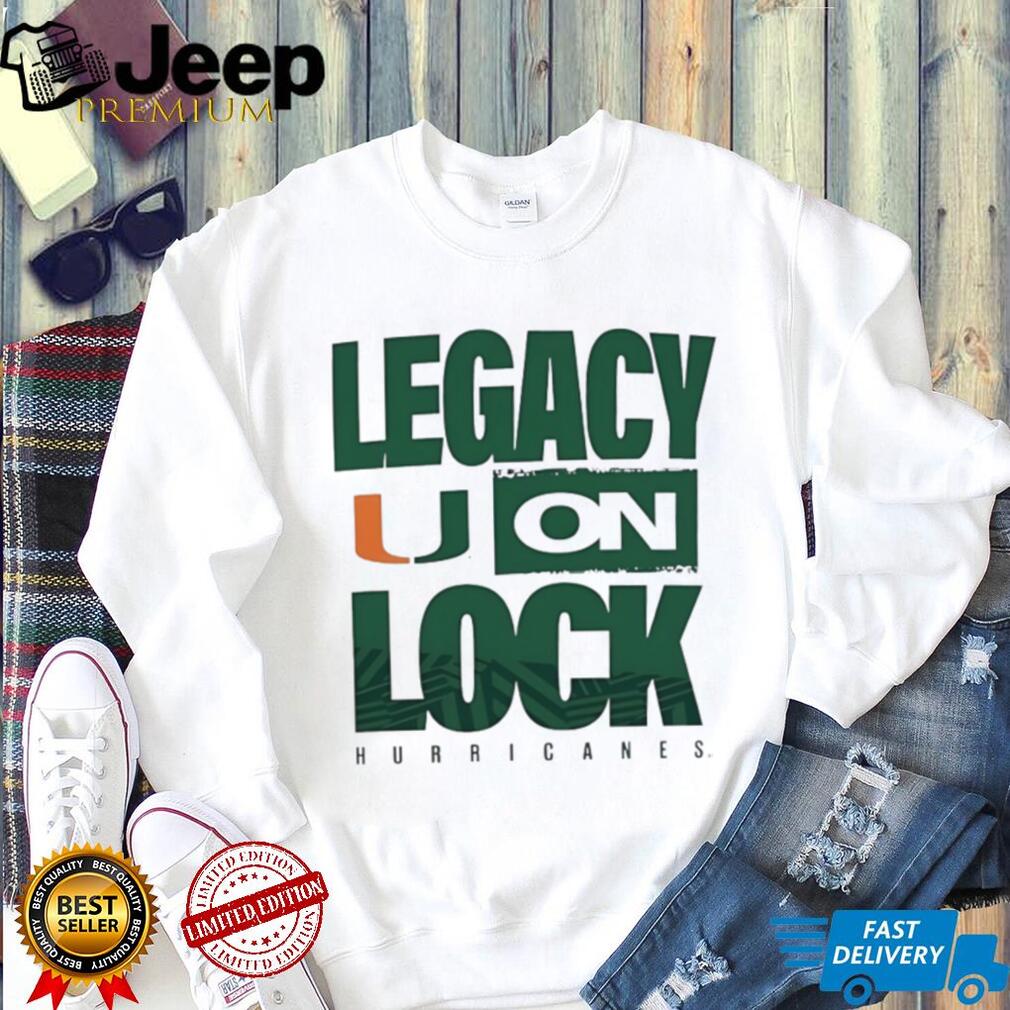 ()University of Miami Hurricanes “Legacy On Lock” Graphic T Shirt, Treat yourself or make a great gift for your loved ones