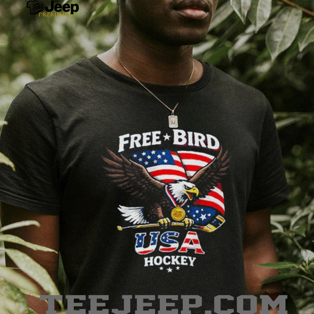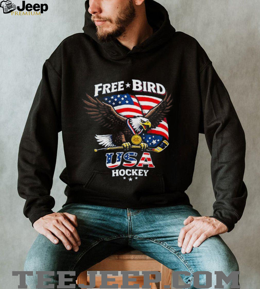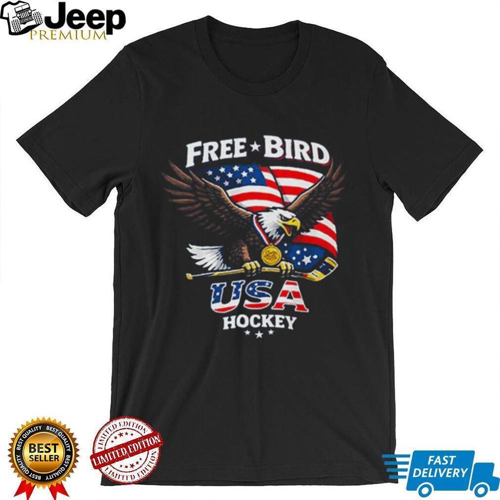 ()USA Hockey Free Bird American Flag Bald Eagle Gold Medal T Shirt, Treat yourself or make a great gift for your loved ones