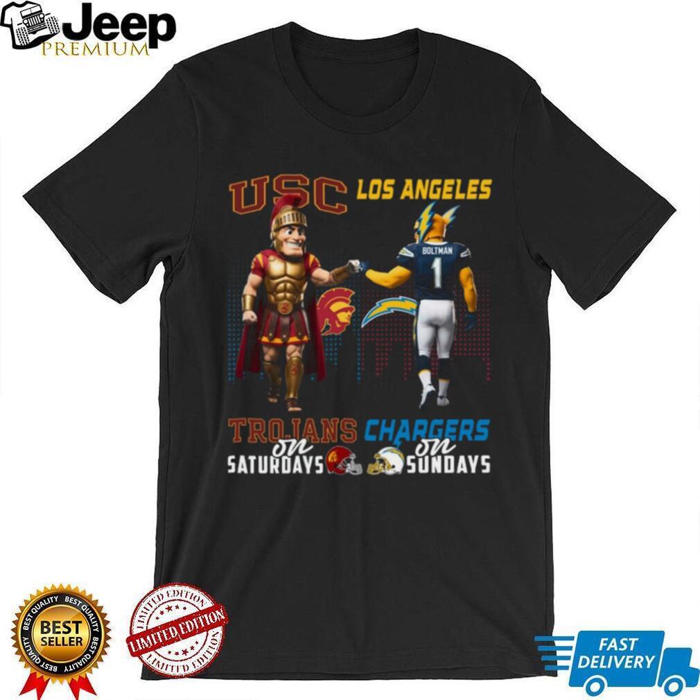For the true LA football fanatic, Saturdays are for the Trojans and Sundays are for the Chargers! This USC Trojans & LA Chargers T-shirt lets you rep both teams in style.