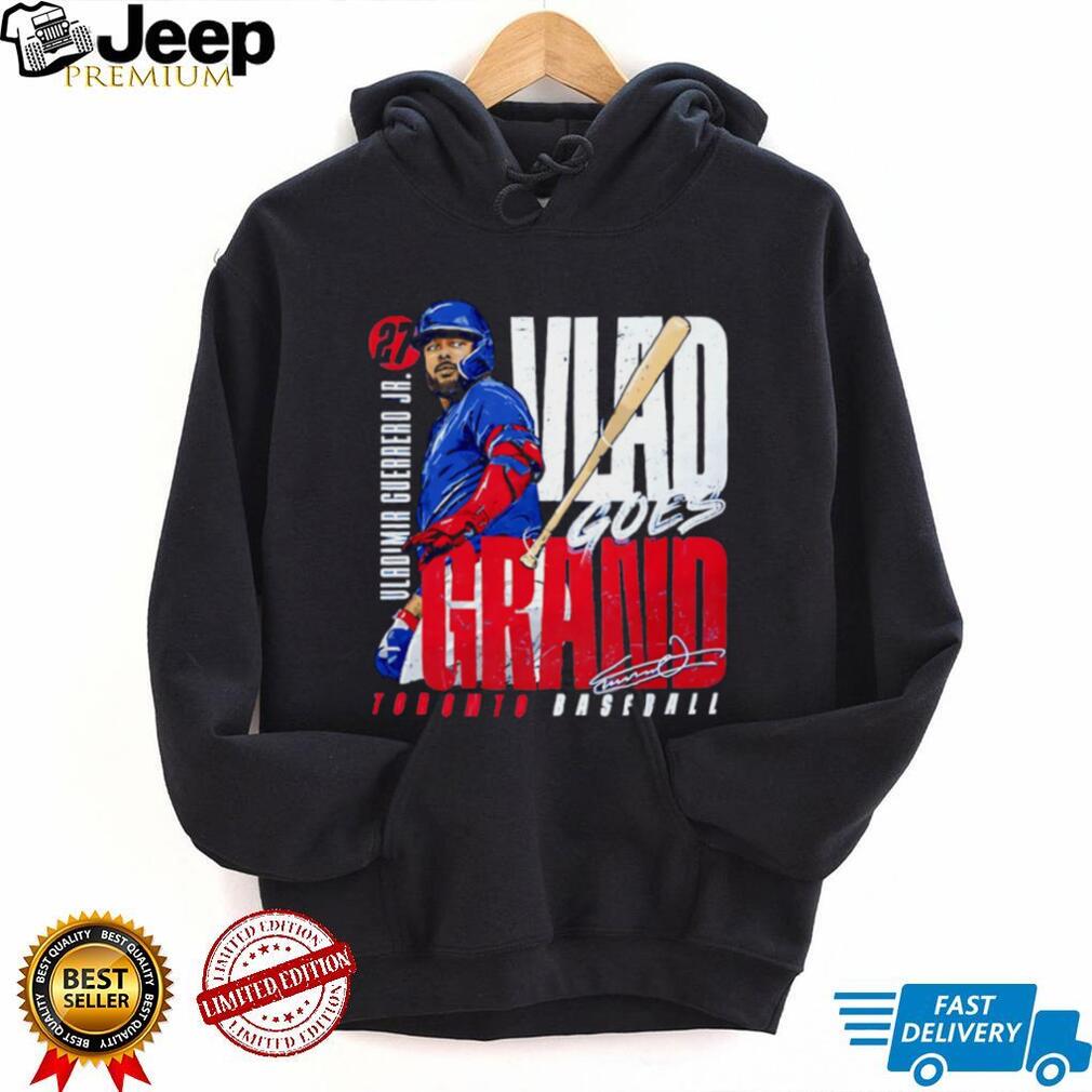 Feel the electric energy of a stadium-rattling home run every time you wear this Vladimir Guerrero Jr. Toronto Blue Jays MLB Bat Flip signature shirt. This isn’t just a piece of fan apparel; it’s a frozen moment of pure baseball euphoria, celebrating one of the game’s most iconic power hitters and his signature flourish. For every Blue Jays loyalist and baseball purist who appreciates raw talent and undeniable swagger, this tee captures the essence of Vlad Jr.’s impact. Imagine reliving those monumental bat flips, feeling the thrill of every deep drive right along with the crowd. This shirt is for those who live and breathe baseball, who understand that some moments are simply too grand to be forgotten.