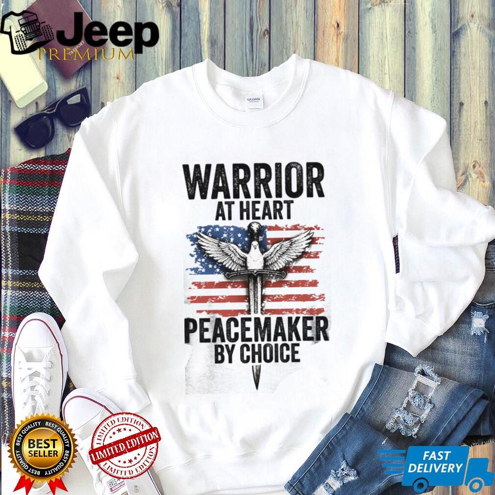 ()Warrior At Heart Peacemaker By Choice American Flag Sword & Dove T shirt, Treat yourself or make a great gift for your loved ones