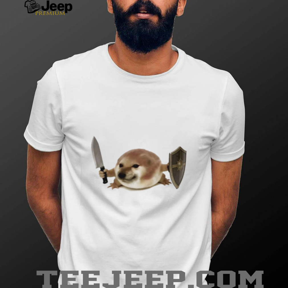 ()Warrior Doge Meme With Knife And Shield Graphic White T Shirt, Treat yourself or make a great gift for your loved ones