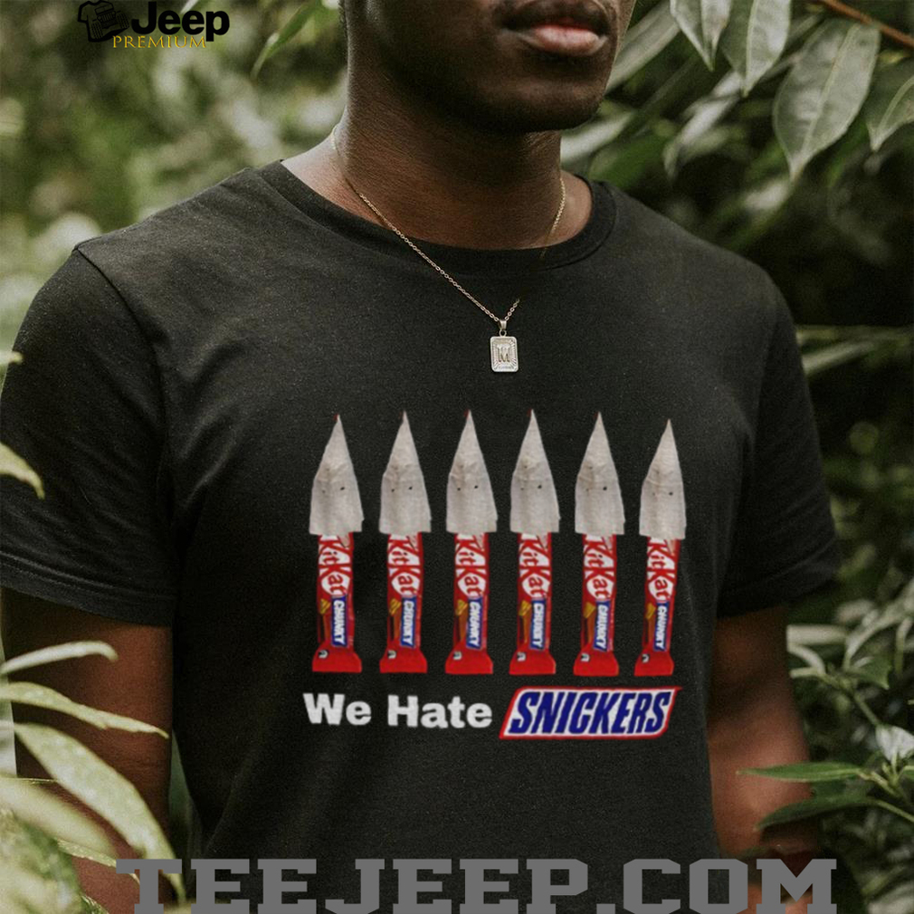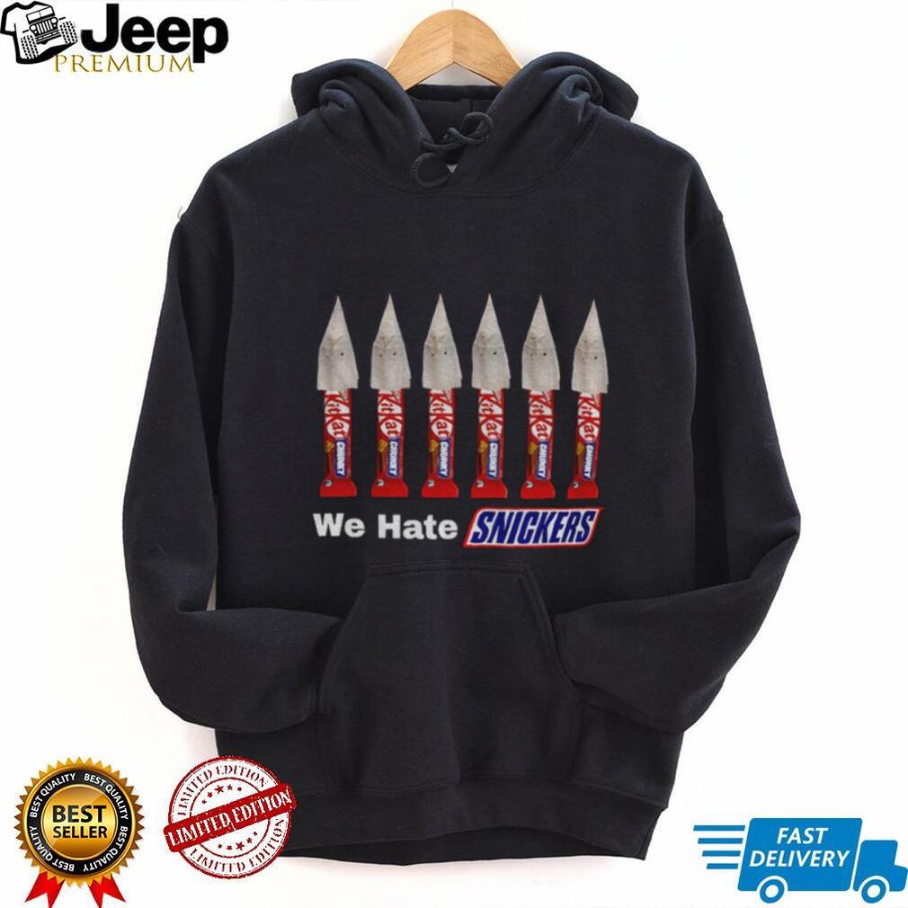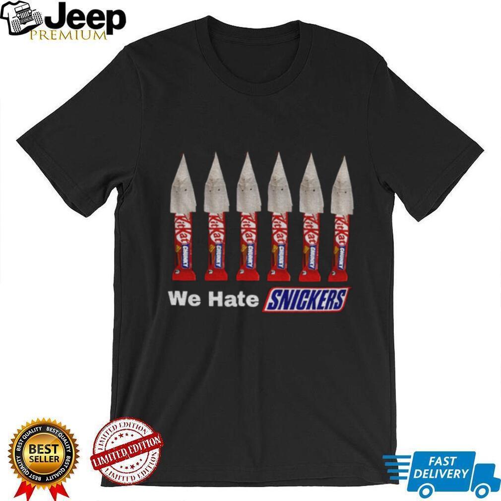 This humorous trending shirt features a bold “We hate Snickers” statement, making it impossible to ignore, as clearly seen in the first image. It’s designed for impact and laughs, perfect for those with a niche sense of humor. Crafted from a soft, comfortable cotton blend, this tee offers all-day wearability, whether you’re out with friends or just lounging at home. The high-quality print is made to last, ensuring your playful protest against Snickers stays strong through many washes.