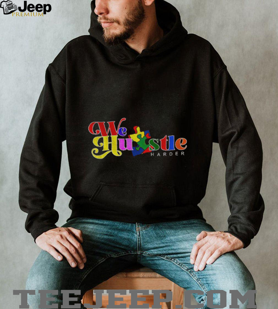 The “We Hustle Harder Autism Awareness shirt” is a piece of apparel that combines a message of determination and hard work with autism awareness. This shirt aims to challenge stereotypes by highlighting the strength and perseverance of individuals with autism. The phrase “We Hustle Harder” suggests a commitment to overcoming challenges and achieving goals, while also promoting understanding and acceptance of autism. The design prominently features the phrase “We Hustle Harder” and imagery related to autism awareness.