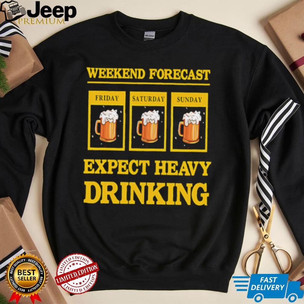 A “Weekend Beer Forecast Friday Saturday Sunday Expect Heavy Drinking shirt” humorously outlines the wearer’s plans for the upcoming weekend. Framed as a weather forecast, the shirt predicts a high probability of consuming a significant amount of beer across Friday, Saturday, and Sunday. This playful design uses familiar meteorological terminology to convey a lighthearted intention for leisure and indulgence. It’s a casual and humorous way for someone to signal their anticipation for a weekend filled with social drinking and relaxation.