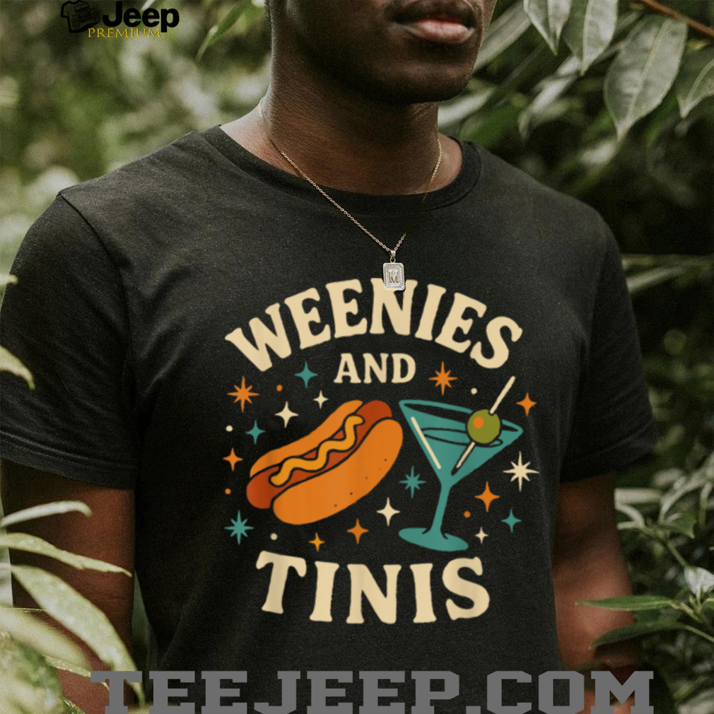 The phrase “Weenies and Tinis” is a stroke of comedic genius, creating an unforgettable and somewhat absurd pairing. On one hand, you have the humble, all-American **hotdog** (or "weenie"), a symbol of casual gatherings, backyard BBQs, and simple pleasures. On the other, the sophisticated **martini** ("tini"), an emblem of elegance, refined tastes, and swanky cocktail parties. The juxtaposition is inherently funny, appealing to those who appreciate a good laugh and aren’t afraid to mix highbrow with lowbrow. It’s a bold claim to combine these two, yet it works perfectly to evoke a sense of carefree fun. As many social commentators note, true enjoyment often comes from breaking conventions, and this shirt does exactly that. I personally love how it defies expectations, much like a surprise hotdog bar at a fancy dinner party! What other unexpected food and drink pairings do you find surprisingly delightful?