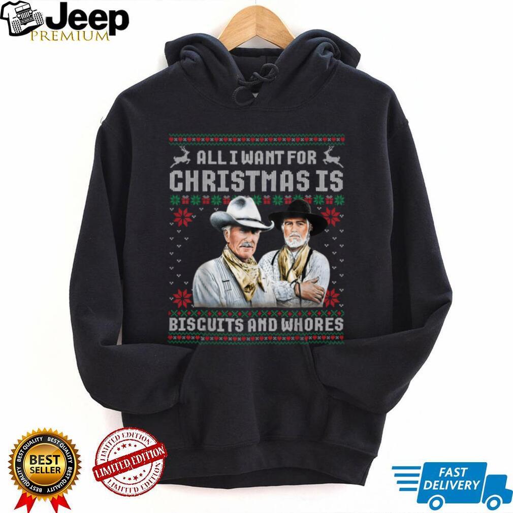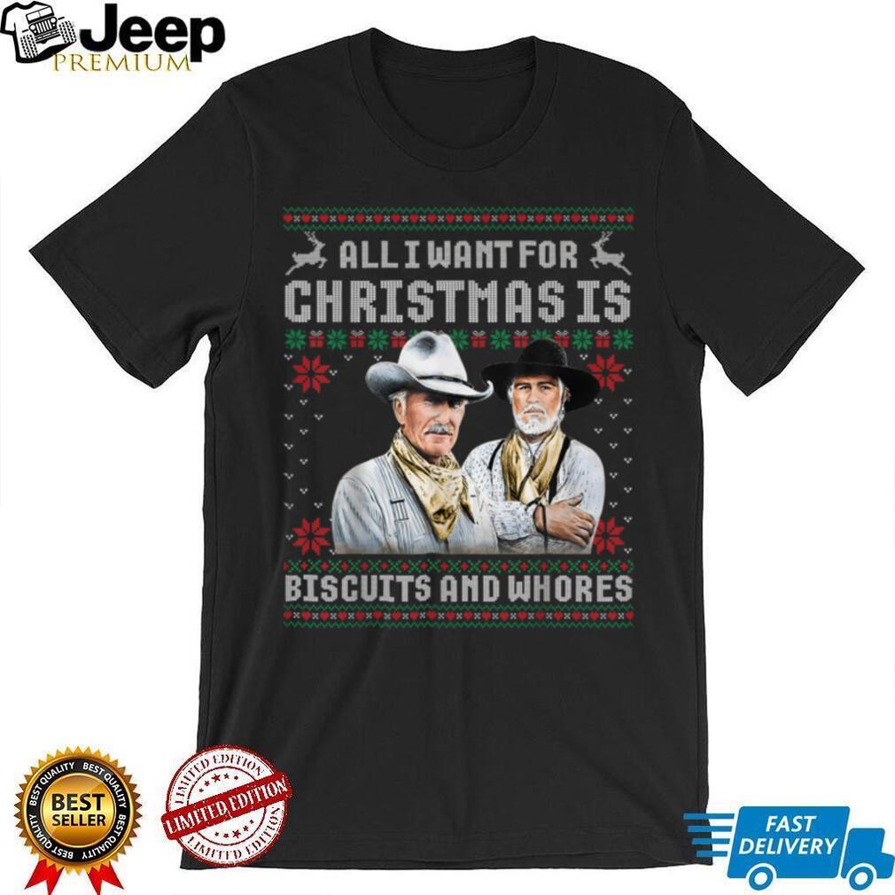 Saddle up for some irreverent holiday cheer with this “Western Cowboys Biscuits and Whores” Christmas T-Shirt! If you’re looking to shake up the traditional Christmas vibe with a touch of Wild West humor, this retro tee is your ticket. It’s not your grandma’s Christmas carol – it’s a bold statement for those who like their holidays with a side of sass. Get ready to turn heads and spark some laughs (or gasps!) at your next holiday gathering.