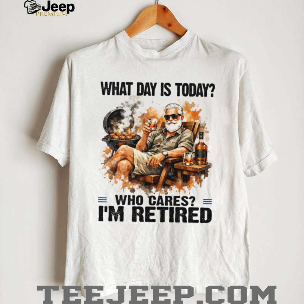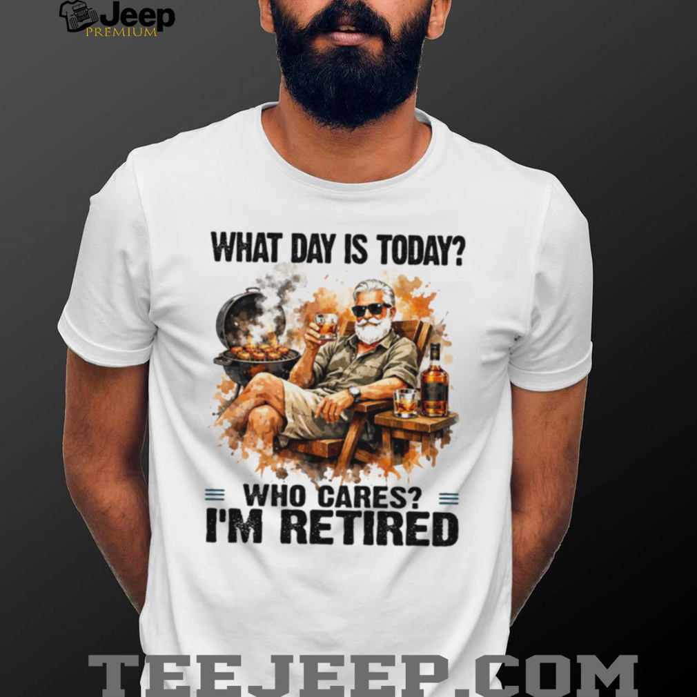 👕 About What Day Is Today Who Cares I'm Retired BBQ Grill and Whiskey T Shirt