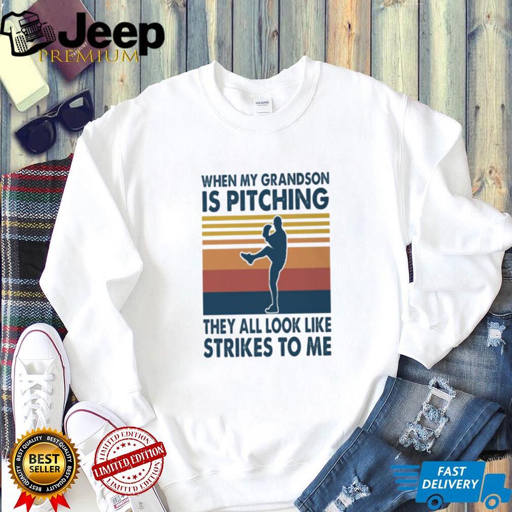 ()When My Grandson Is Pitching They All Look Like Strikes Baseball GrandmaGrandpa T Shirt, Treat yourself or make a great gift for your loved ones