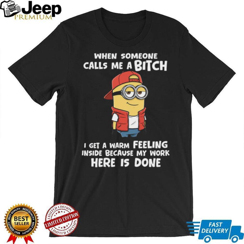When Someone Calls Me Abitch I Get A Warm Feeling Inside Because My Work Here Is Done Minion Shirt, Treat yourself or make a great gift for your loved ones