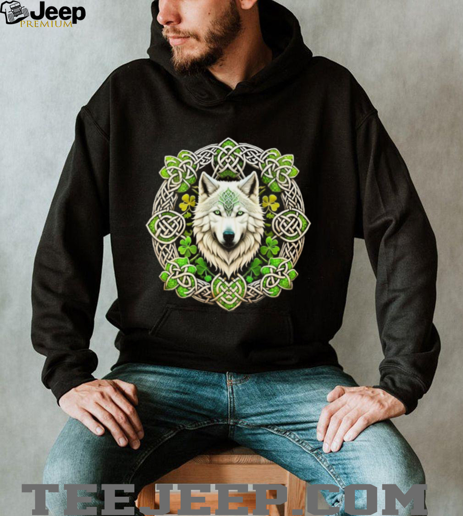 ()White Wolf Celtic Knot Shamrock St. Patrick’s Day Artistic T Shirt, Treat yourself or make a great gift for your loved ones