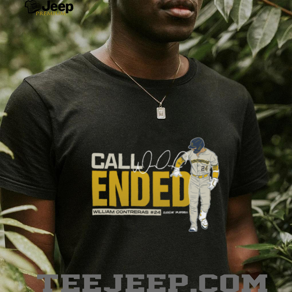 To preserve the unique design and comfort of your William Contreras Call Ended Milwaukee Brewers T-Shirt, wash it inside out in cold water with similar colors. Tumble dry on low heat or hang dry to prevent shrinking and cracking of the graphic. Avoid direct ironing on the print and using strong detergents.