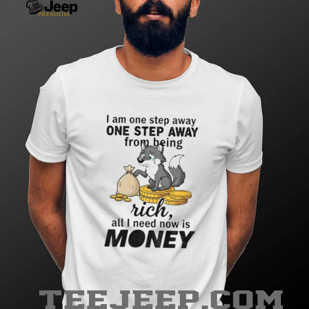 Are you tired of being just one step away from wealth? This Wolf I am one step away one step away from being rich all I need now is money shirt captures that universal feeling with a touch of humor. If you dream of striking it rich and love a good laugh, this shirt is your spirit animal. Let the world know your ambitions, one witty t-shirt at a time!