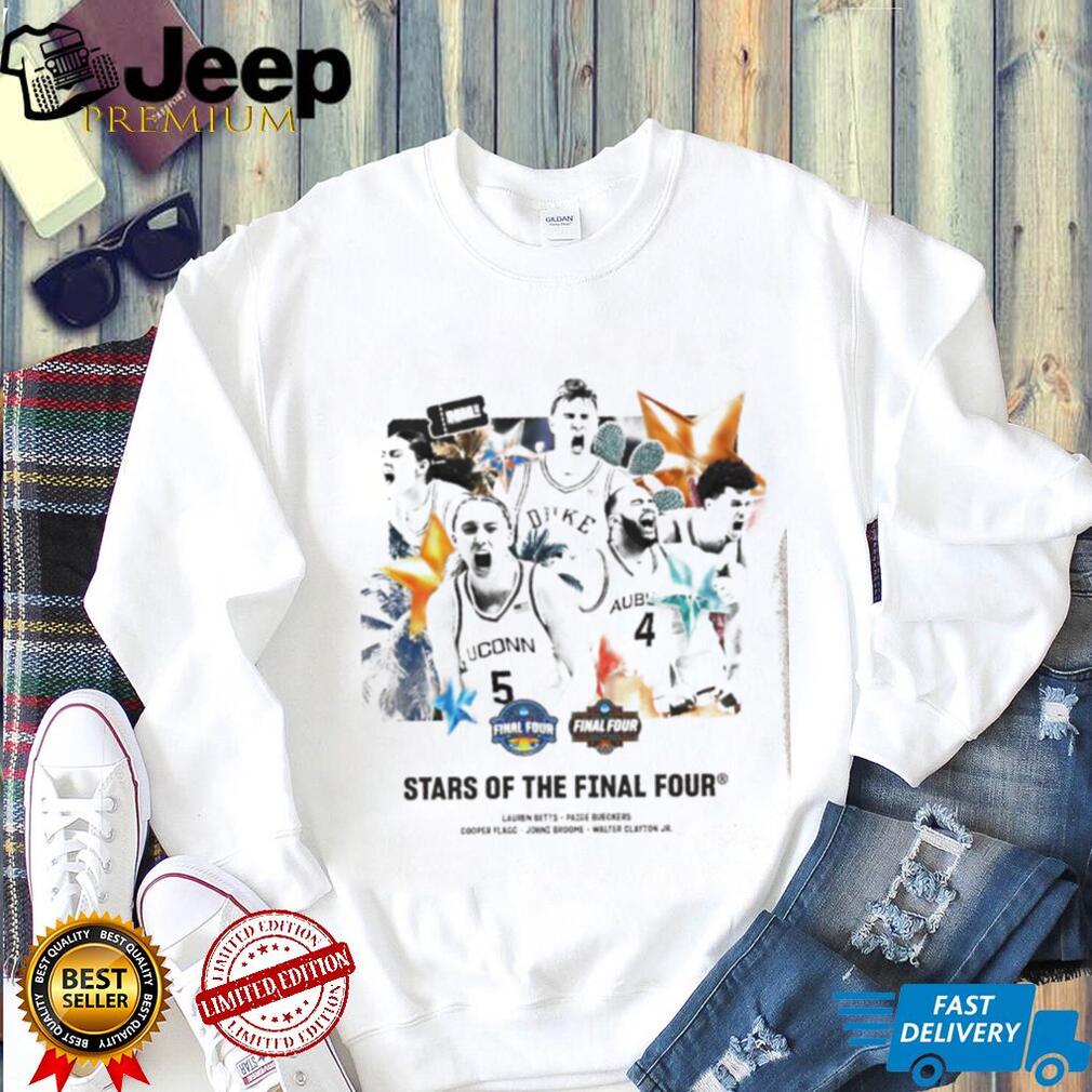 A “Women’s and men’s basketball stars of the Final Four shirt” would be a commemorative piece of apparel celebrating the standout players from both the men’s and women’s NCAA basketball Final Four tournaments of a specific year. Given the current date, this shirt would likely focus on the stars of the 2025 tournaments. The design could feature a collage of prominent players’ names, numbers, or silhouettes, possibly incorporating team logos and the official Final Four branding. This shirt serves as a tribute to the exceptional talent and memorable performances that defined the pinnacle of the college basketball season.