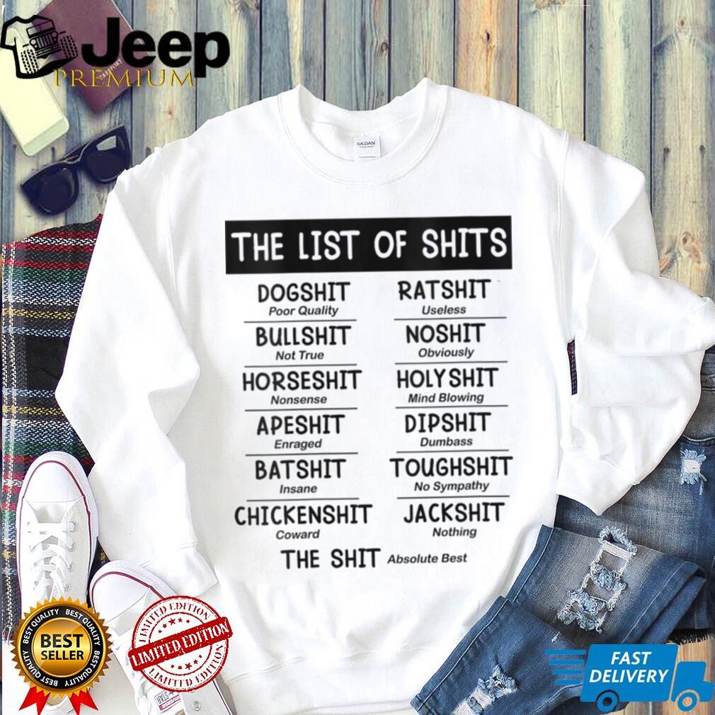 The phrase “**The List of Shits**” on this **T-shirt** isn’t just about profanity; it’s a humorous and defiant expression of mental and emotional exhaustion. For many **Womens**, juggling careers, family responsibilities, social expectations, and personal well-being can lead to significant burnout. This shirt is a comedic declaration of setting boundaries and accepting that not everything can, or should, be a priority. My personal commentary: I’ve definitely felt this sentiment! It’s a hilarious way to say, “My plate is full, and I’m choosing what actually gets my attention.” But what happens next will surprise you: studies have shown that intentionally reducing one’s “caring capacity” for non-essential matters and focusing on core priorities can significantly improve mental well-being and reduce stress, making this shirt’s message not just funny, but psychologically beneficial. This bold claim about the psychological benefits of selective caring and the surprising positive outcome of reducing the mental load create a powerful viral trigger, validating the humor with a scientific backing.