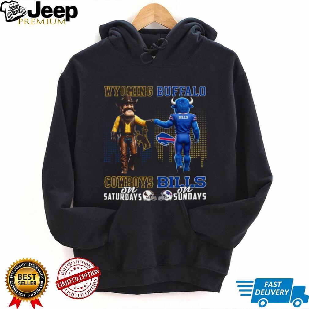 To keep your Wyoming Buffalo Bills Cowboys Saturdays Sundays Fan T Shirt looking its best, machine wash cold and tumble dry low. This will help maintain the vibrant colors and comfortable fit for seasons to come.