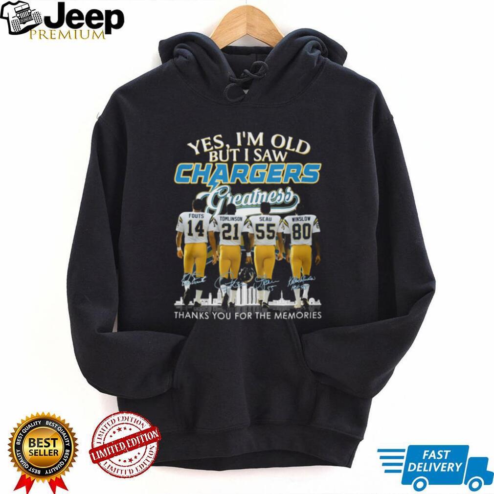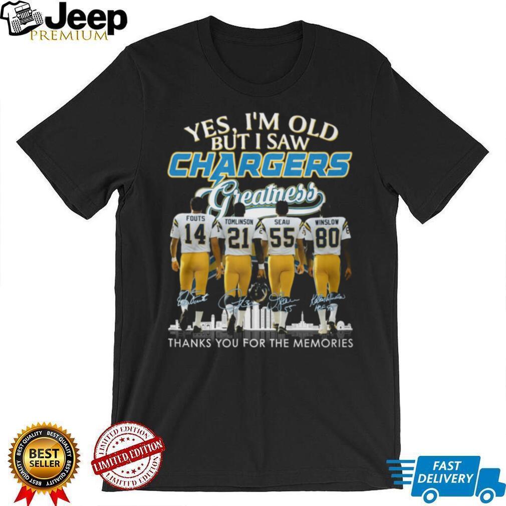 👕 About Yes I'm Old But I Saw Chargers Greatness Fouts Tomlinson Seau Winslow Signatures T Shirt