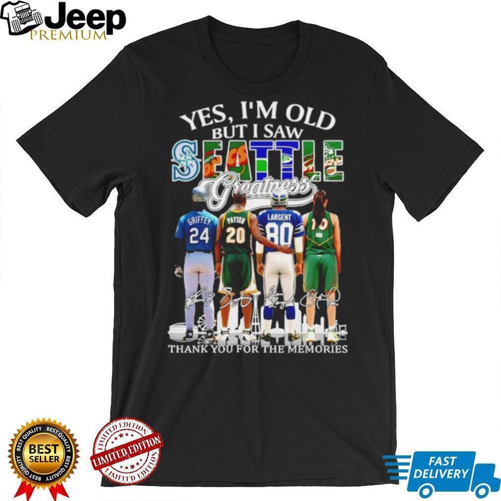 👕 About “Yes I'm Old But I Saw Seattle Greatness” Griffey Payton Largent Bird Memories T Shirt