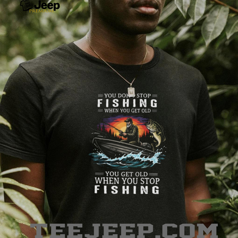 You Get Old When You Stop Fishing Bass Fishing Sunset Boat Graphic T Shirt, Treat yourself or make a great gift for your loved ones