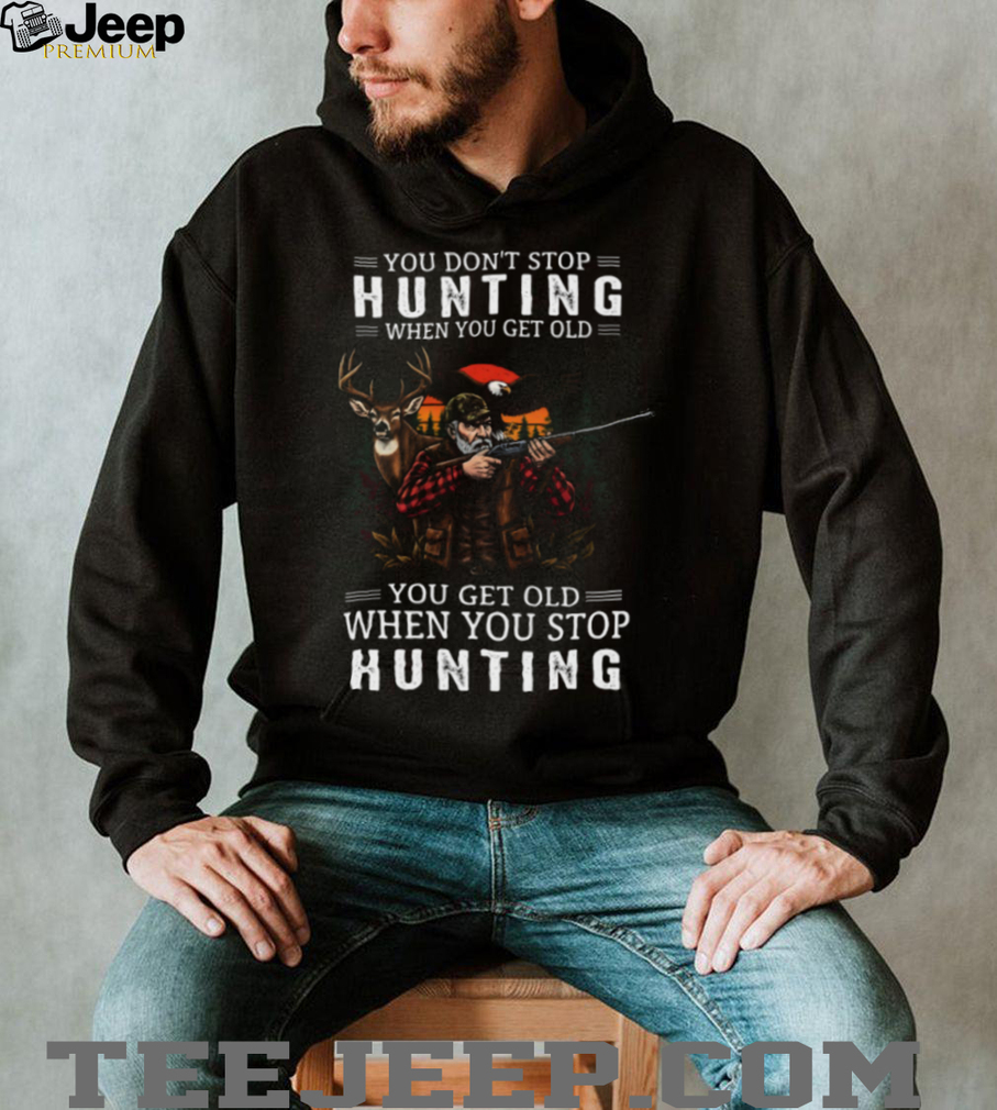 ()You Get Old When You Stop Hunting Deer Hunter Eagle Flag Vintage Style T Shirt, Treat yourself or make a great gift for your loved ones