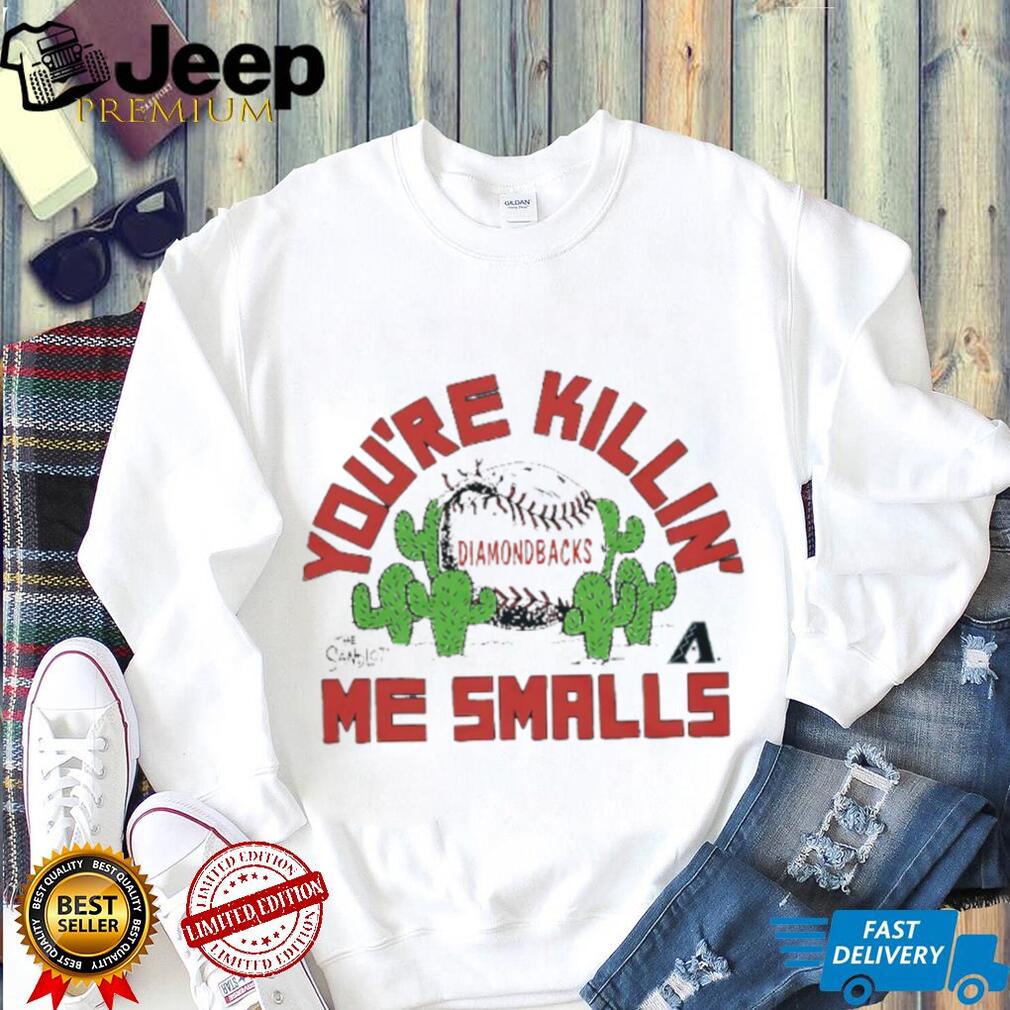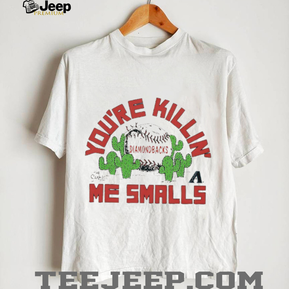 The “You’re killin me smalls the Sandlot Arizona Diamondbacks baseball logo shirt” is a unique and playful piece that expertly combines the beloved coming-of-age film, **The Sandlot**, with the vibrant spirit of the **Arizona Diamondbacks baseball logo**. This **T-shirt** features the universally recognized quote, “**You’re killin me smalls**,” a semantic keyword that instantly brings a smile to fans of the movie and evokes warm memories of childhood summers. By blending this iconic phrase with the distinctive emblem of the **Arizona Diamondbacks**, the shirt offers a fun and stylish way for fans to express their love for both classic cinema and their favorite MLB team. It’s more than just apparel; it’s a statement piece, a conversation starter, and a true fan favorite that bridges generations of pop culture and sports.